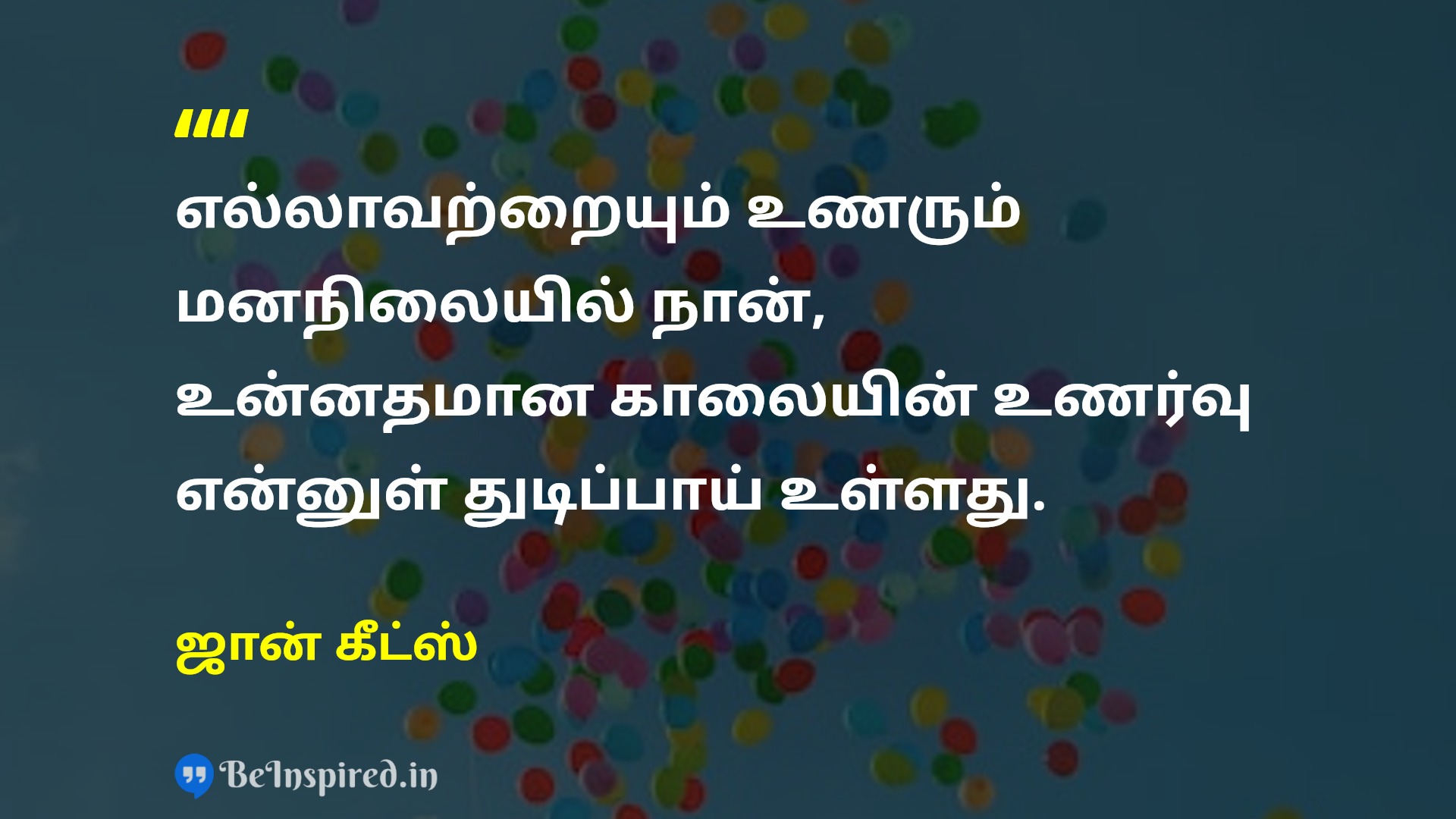 எல்லாவற்றையும் உணரும் மனநிலையில் நான், உன்னதமான காலையின் உணர்வு என்னுள் துடிப்பாய் உள்ளது.