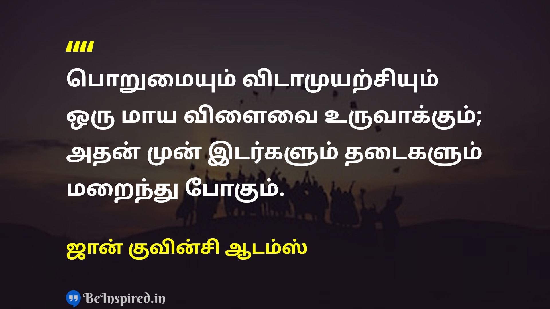 பொறுமையும் விடாமுயற்சியும் ஒரு மாய விளைவை உருவாக்கும்; அதன் முன் இடர்களும் தடைகளும் மறைந்து போகும்.