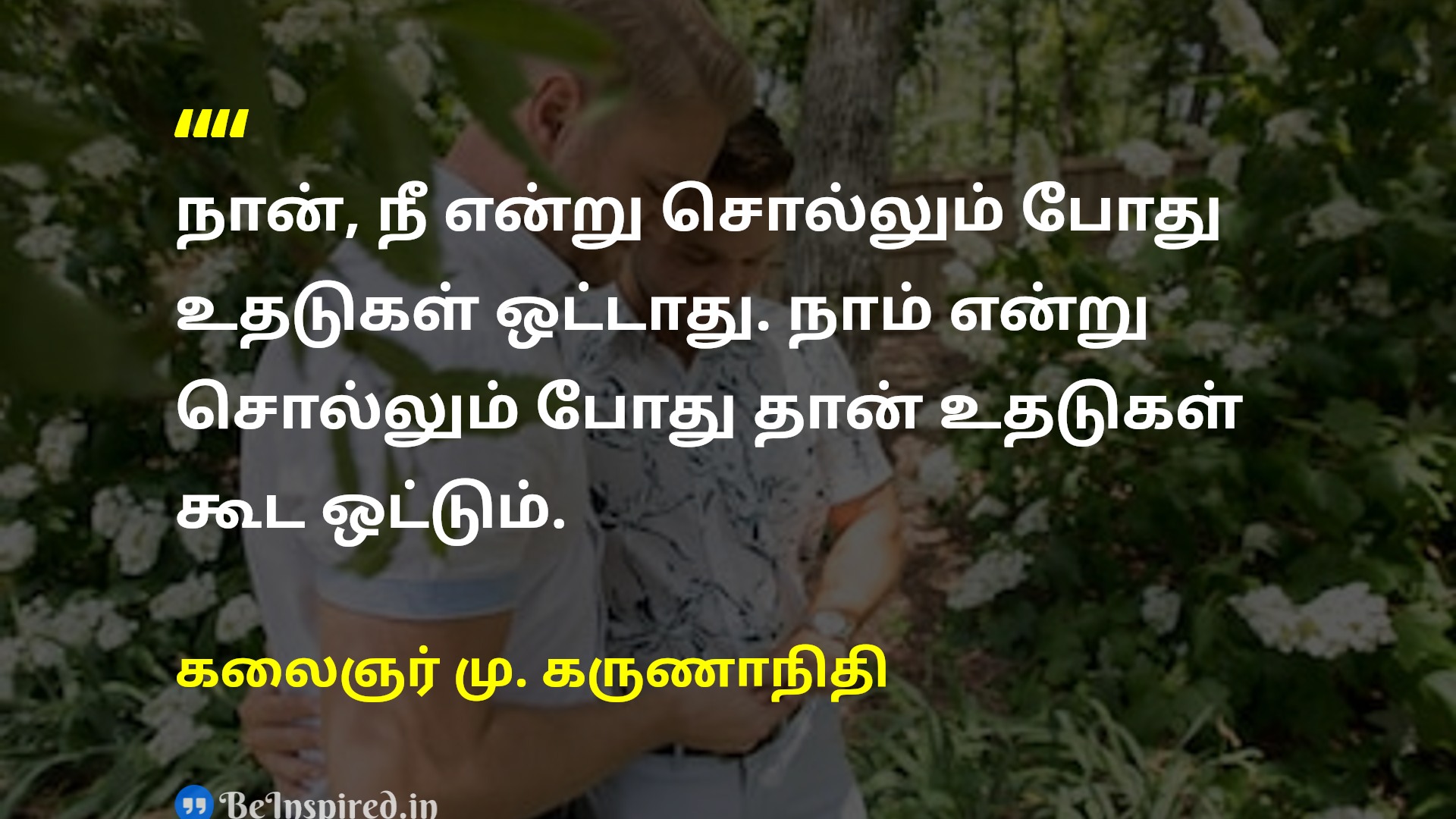 நான், நீ என்று சொல்லும் போது உதடுகள் ஒட்டாது. நாம் என்று சொல்லும் போது தான் உதடுகள் கூட ஒட்டும்.