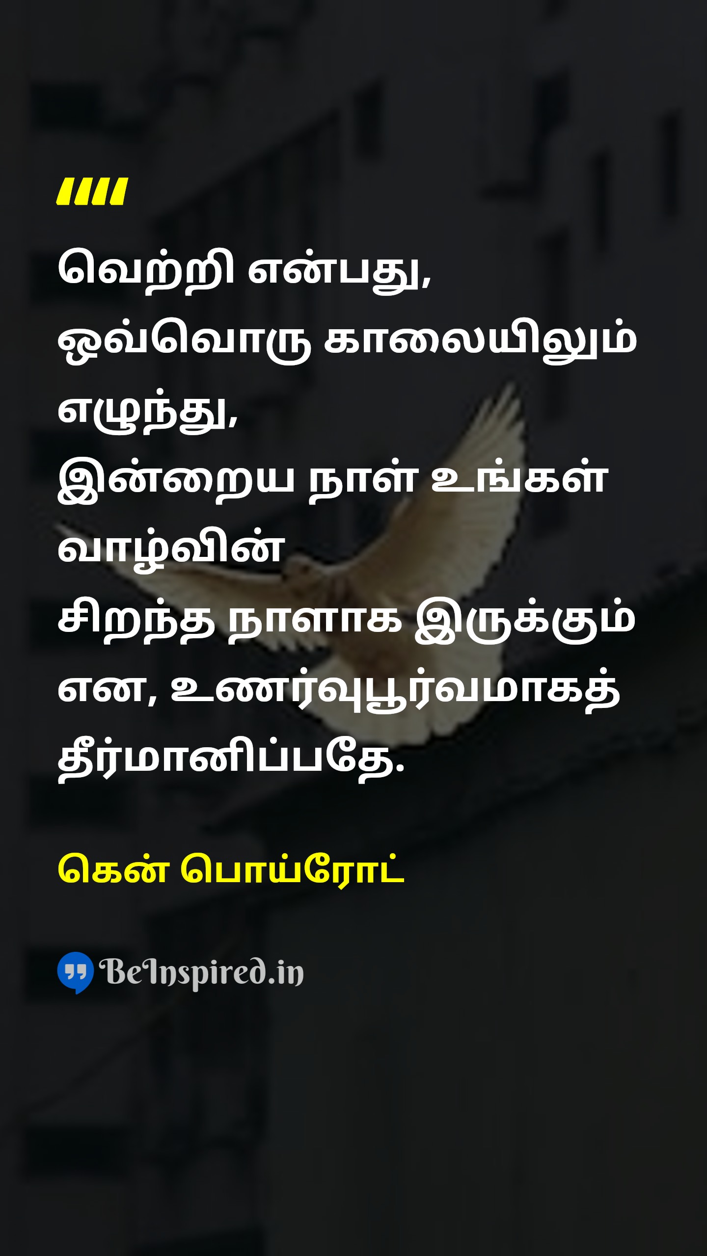வெற்றி என்பது, ஒவ்வொரு காலையிலும் எழுந்து, இன்றைய நாள் உங்கள் வாழ்வின் சிறந்த நாளாக இருக்கும் என, உணர்வுபூர்வமாகத் தீர்மானிப்பதே.