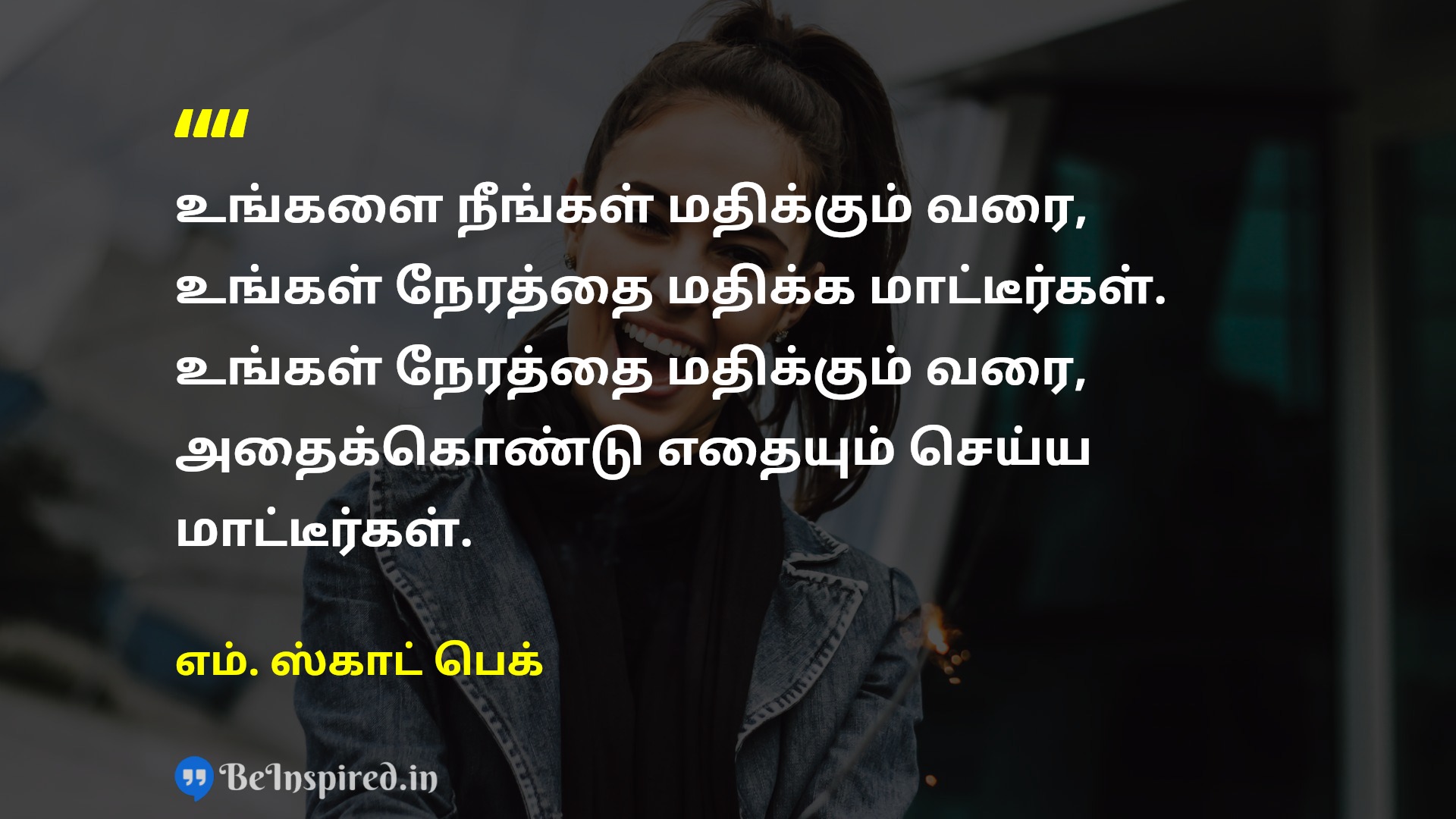 உங்களை நீங்கள் மதிக்கும் வரை, உங்கள் நேரத்தை மதிக்க மாட்டீர்கள். உங்கள் நேரத்தை மதிக்கும் வரை, அதைக்கொண்டு எதையும் செய்ய மாட்டீர்கள்.