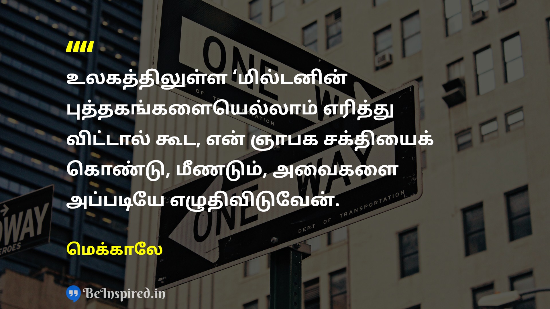 உலகத்திலுள்ள ‘மில்டனின் புத்தகங்களையெல்லாம் எரித்து விட்டால் கூட, என் ஞாபக சக்தியைக் கொண்டு, மீணடும், அவைகளை அப்படியே எழுதிவிடுவேன்.