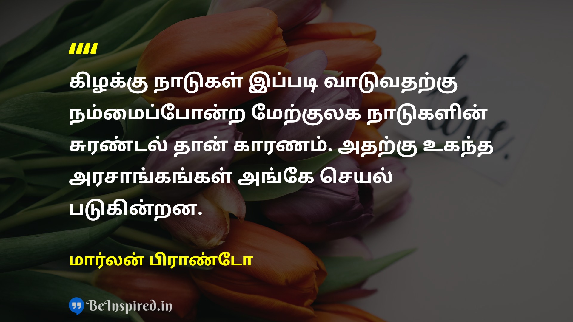 கிழக்கு நாடுகள் இப்படி வாடுவதற்கு நம்மைப்போன்ற மேற்குலக நாடுகளின் சுரண்டல் தான் காரணம். அதற்கு உகந்த அரசாங்கங்கள் அங்கே செயல் படுகின்றன.