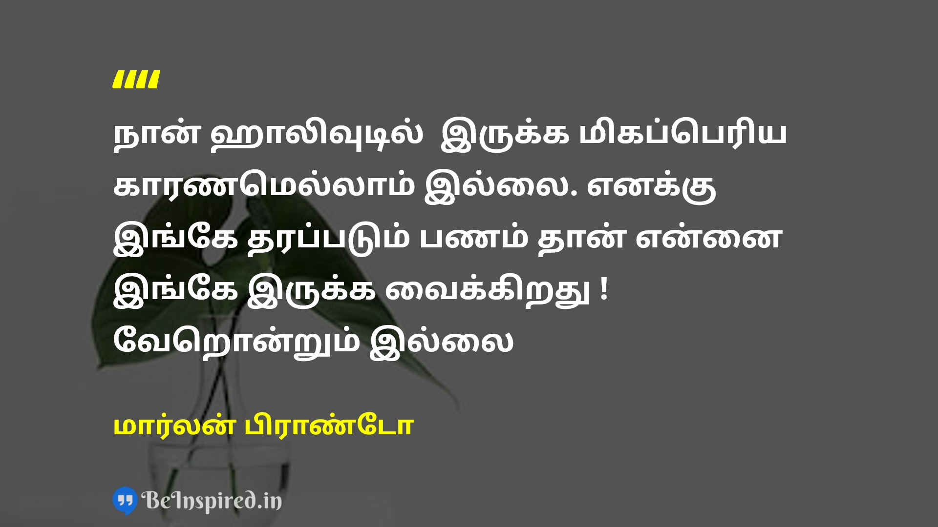 நான் ஹாலிவுடில் இருக்க மிகப்பெரிய காரணமெல்லாம் இல்லை. எனக்கு இங்கே தரப்படும் பணம் தான் என்னை இங்கே இருக்க வைக்கிறது ! வேறொன்றும் இல்லை