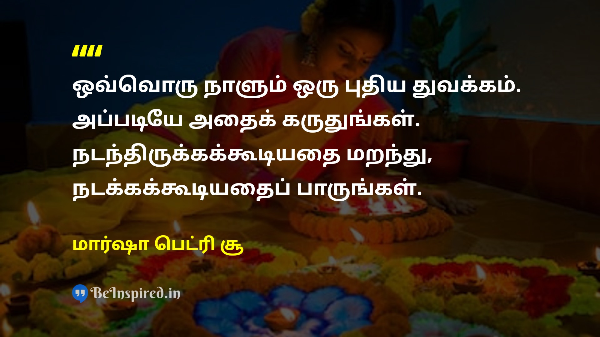 ஒவ்வொரு நாளும் ஒரு புதிய துவக்கம். அப்படியே அதைக் கருதுங்கள். நடந்திருக்கக்கூடியதை மறந்து, நடக்கக்கூடியதைப் பாருங்கள்.