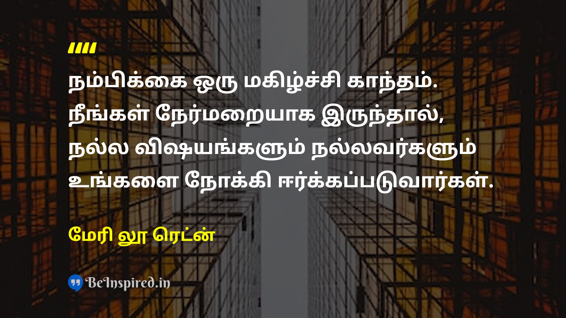 நம்பிக்கை ஒரு மகிழ்ச்சி காந்தம். நீங்கள் நேர்மறையாக இருந்தால், நல்ல விஷயங்களும் நல்லவர்களும் உங்களை நோக்கி ஈர்க்கப்படுவார்கள்.