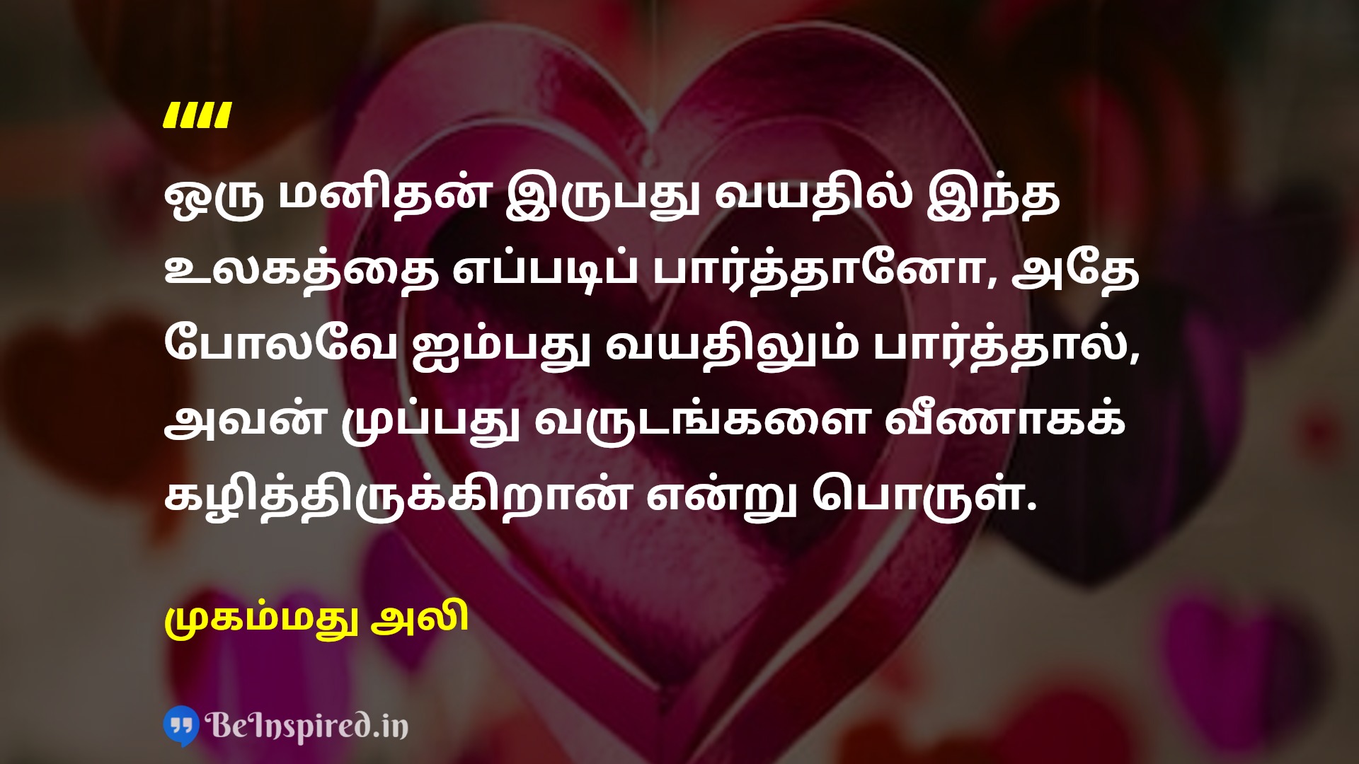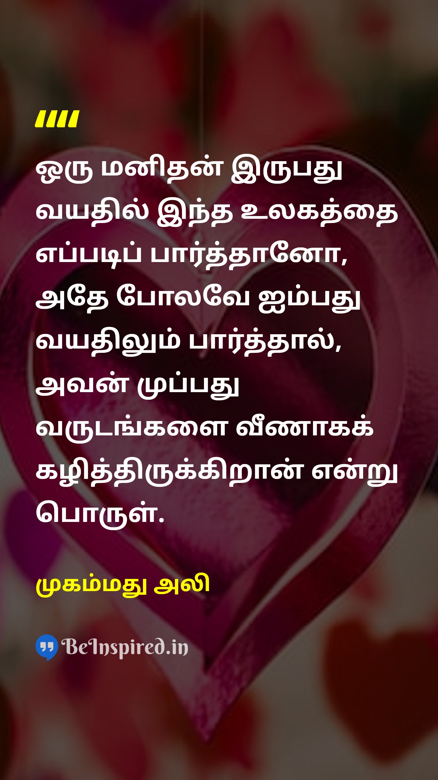 20 வயதில் பார்த்ததைப் போலவே 50 வயதில் உலகைப் பார்க்கும் ஒரு மனிதன் தனது வாழ்நாளின் 30 வருடங்களை வீணடித்துவிட்டான்.
