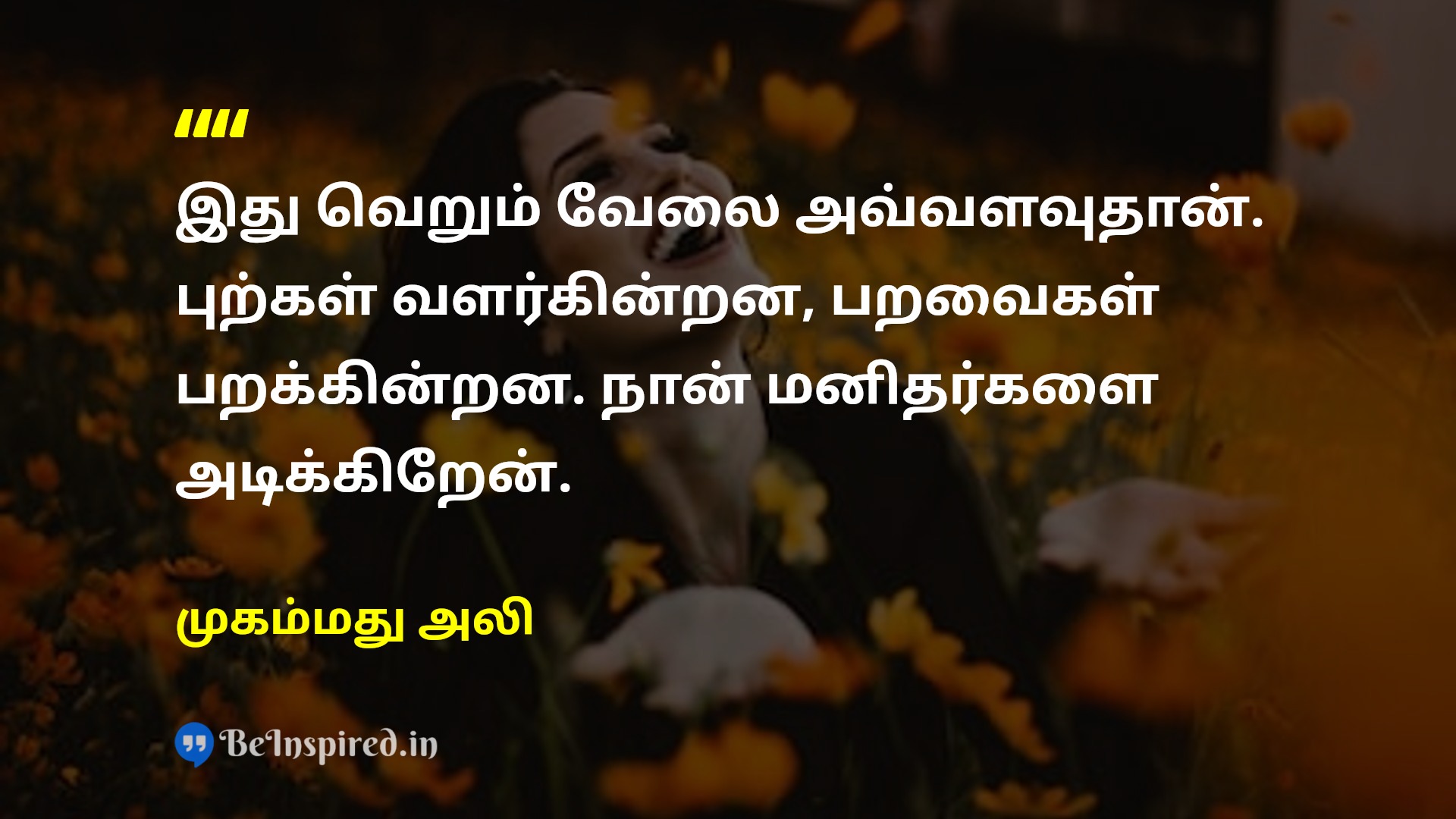 இது வெறும் வேலை அவ்வளவுதான். புற்கள் வளர்கின்றன, பறவைகள் பறக்கின்றன. நான் மனிதர்களை அடிக்கிறேன்.