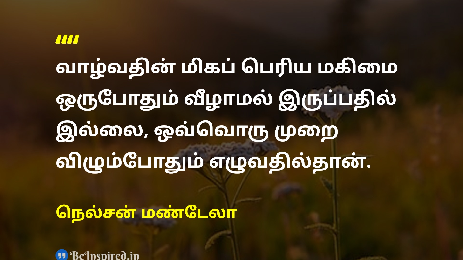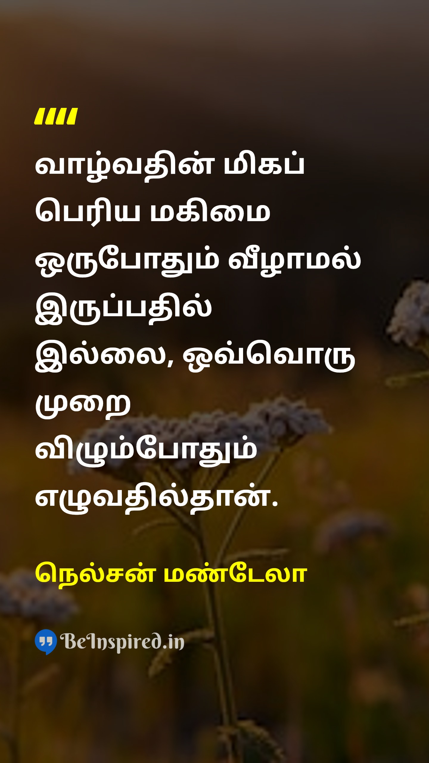 வாழ்வதின் மிகப் பெரிய மகிமை ஒருபோதும் வீழாமல் இருப்பதில் இல்லை, ஒவ்வொரு முறை விழும்போதும் எழுவதில்தான்.