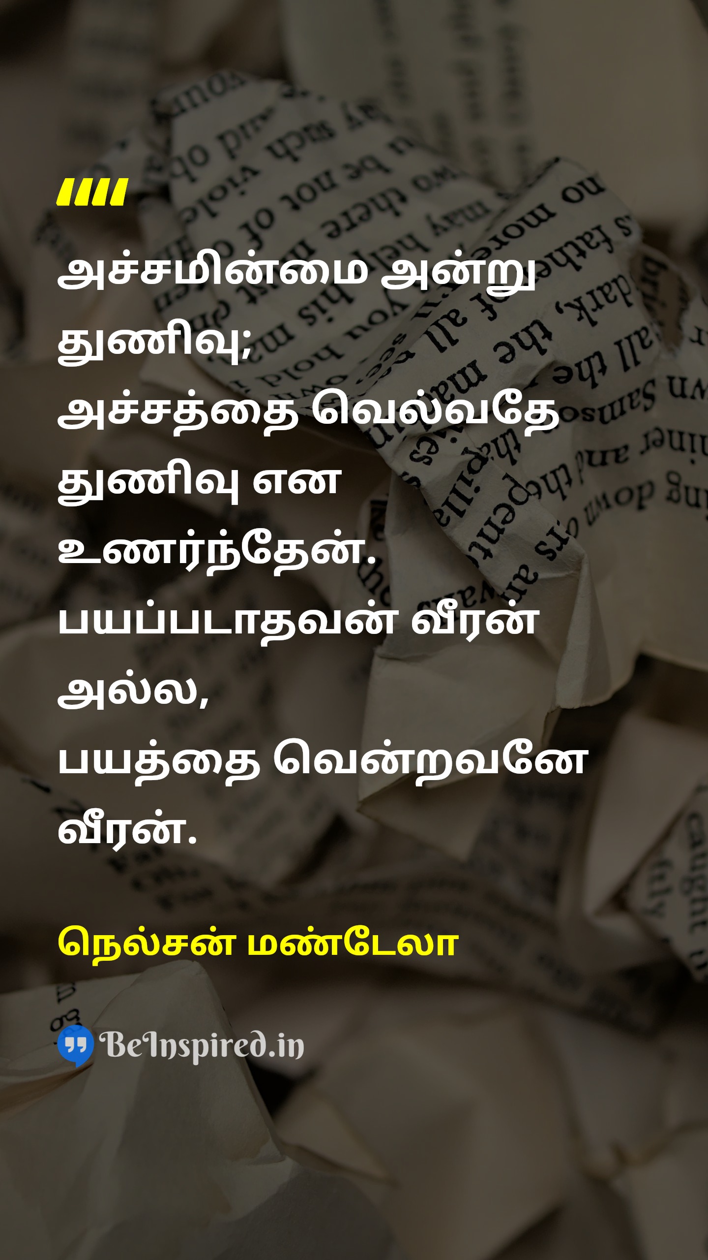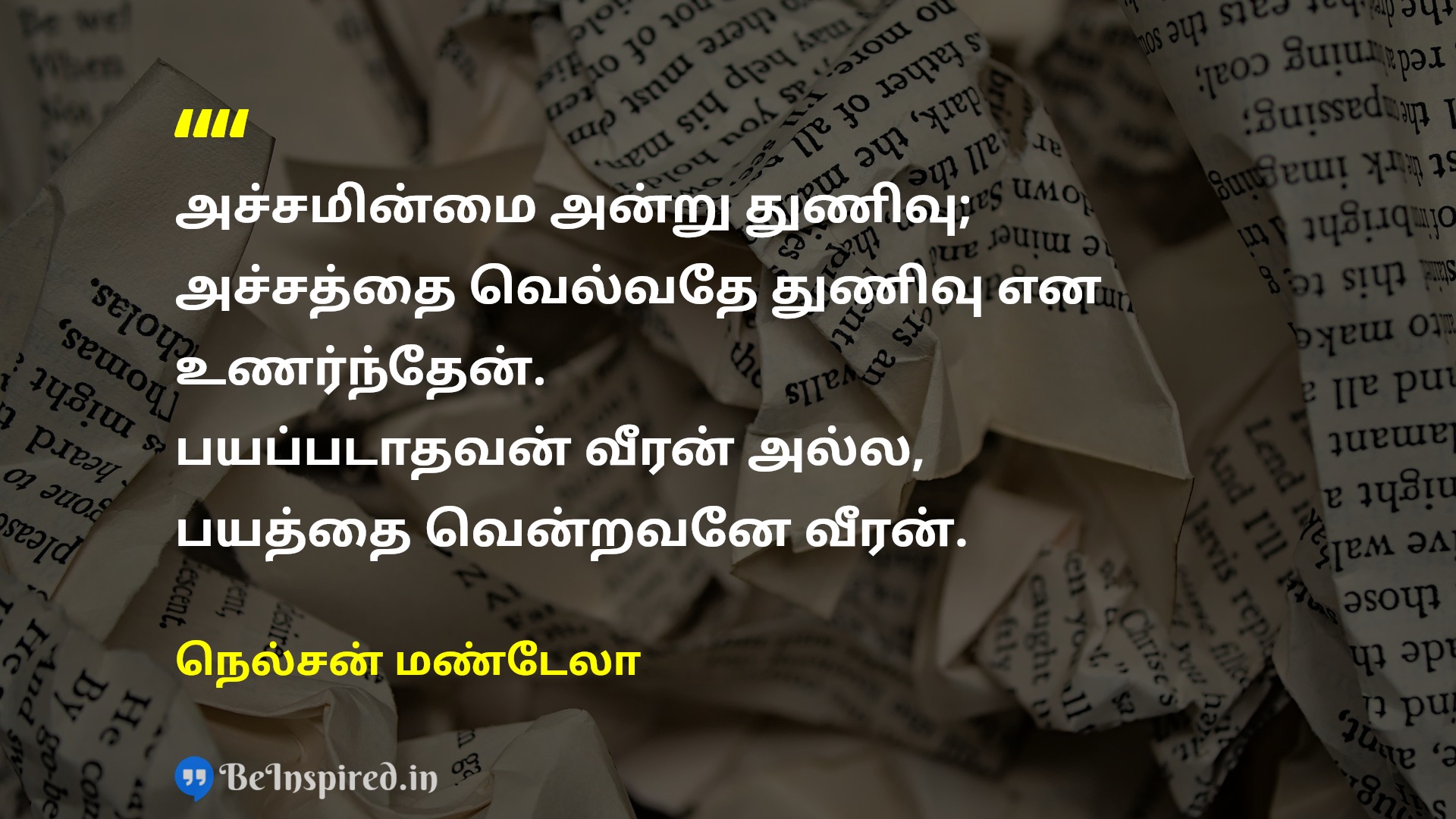 அச்சமின்மை அன்று துணிவு; அச்சத்தை வெல்வதே துணிவு என உணர்ந்தேன். பயப்படாதவன் வீரன் அல்ல, பயத்தை வென்றவனே வீரன்.