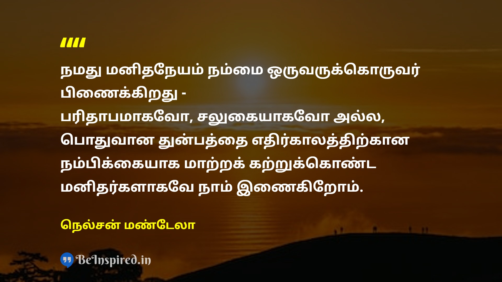 நமது மனிதநேயம் நம்மை ஒருவருக்கொருவர் பிணைக்கிறது - பரிதாபமாகவோ, சலுகையாகவோ அல்ல, பொதுவான துன்பத்தை எதிர்காலத்திற்கான நம்பிக்கையாக மாற்றக் கற்றுக்கொண்ட மனிதர்களாகவே நாம் இணைகிறோம்.