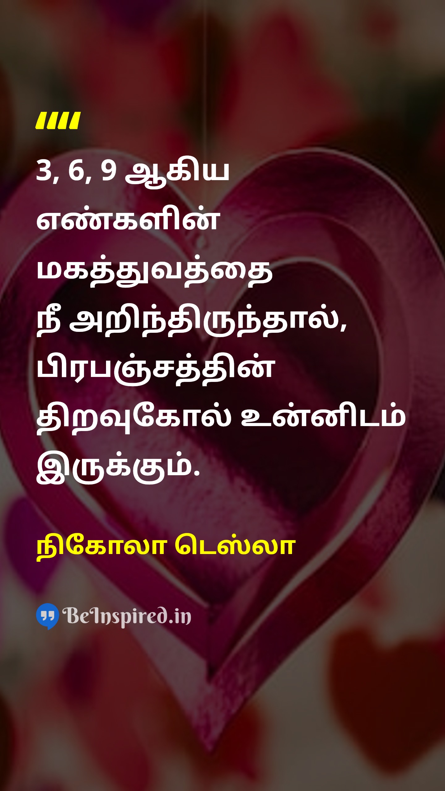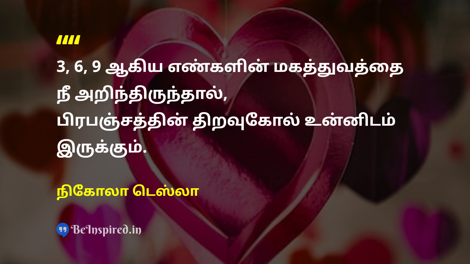 3, 6, 9 ஆகிய எண்களின் மகத்துவத்தை நீ அறிந்திருந்தால், பிரபஞ்சத்தின் திறவுகோல் உன்னிடம் இருக்கும்.