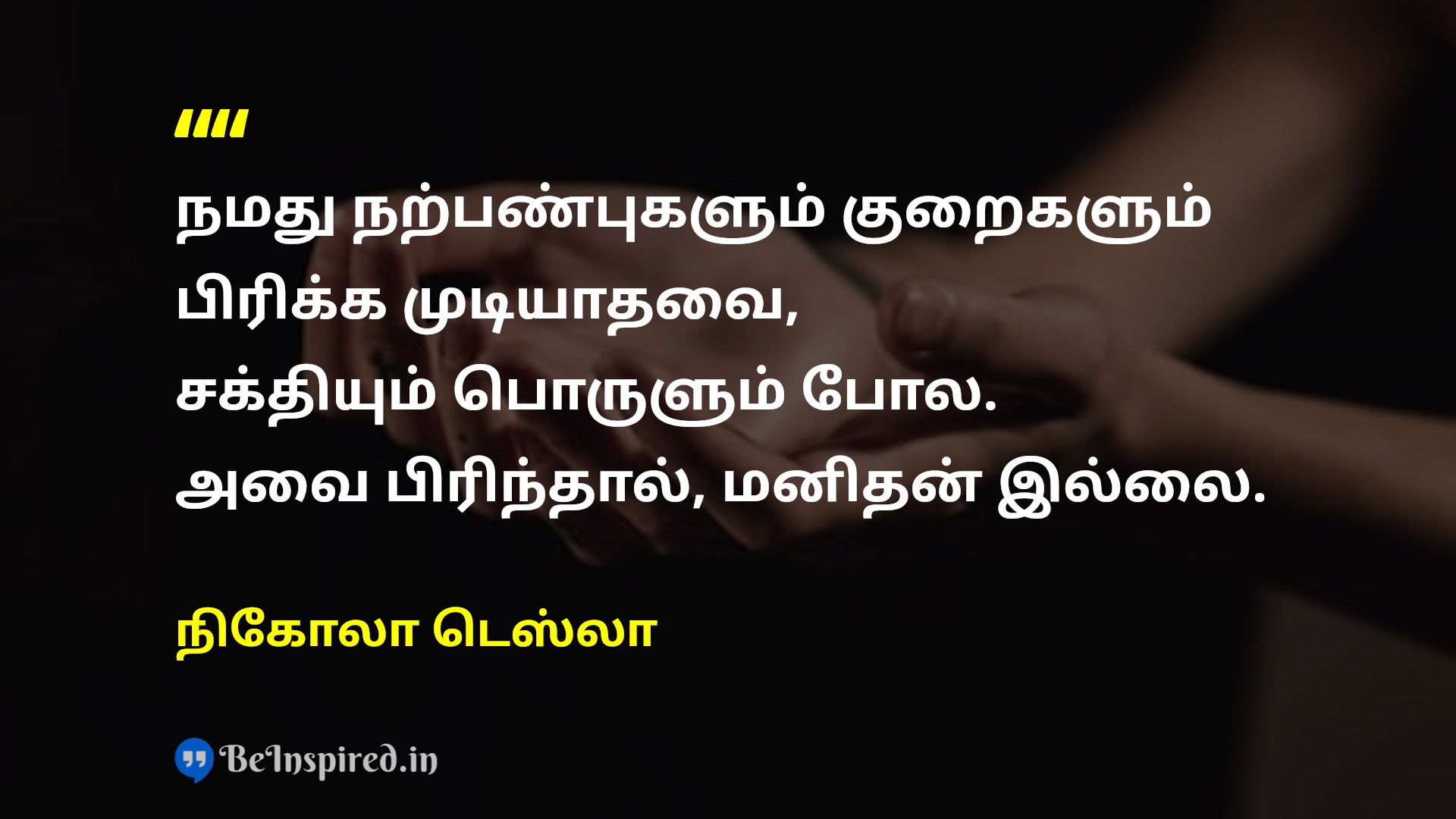 நமது நற்பண்புகளும் குறைகளும் பிரிக்க முடியாதவை, சக்தியும் பொருளும் போல. அவை பிரிந்தால், மனிதன் இல்லை.