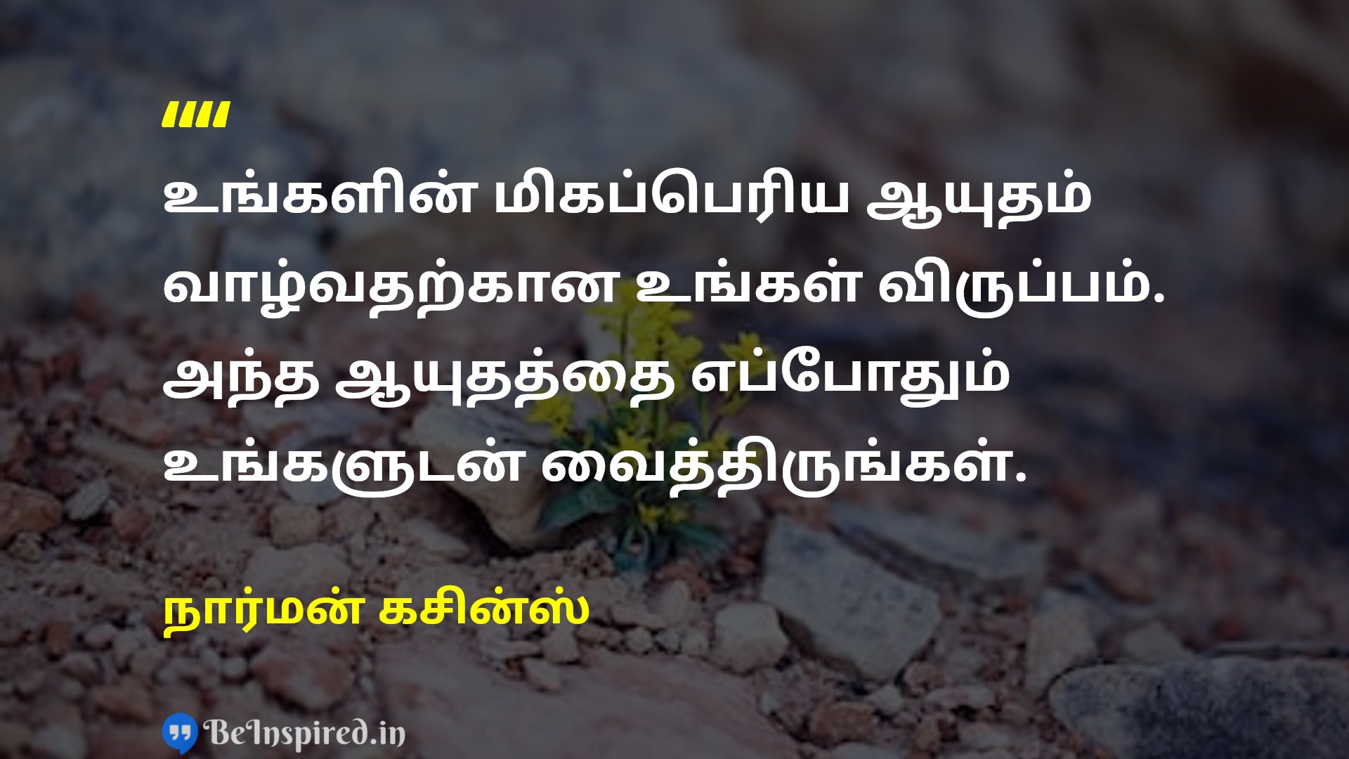 உங்களின் மிகப்பெரிய ஆயுதம் வாழ்வதற்கான உங்கள் விருப்பம். அந்த ஆயுதத்தை எப்போதும் உங்களுடன் வைத்திருங்கள்.