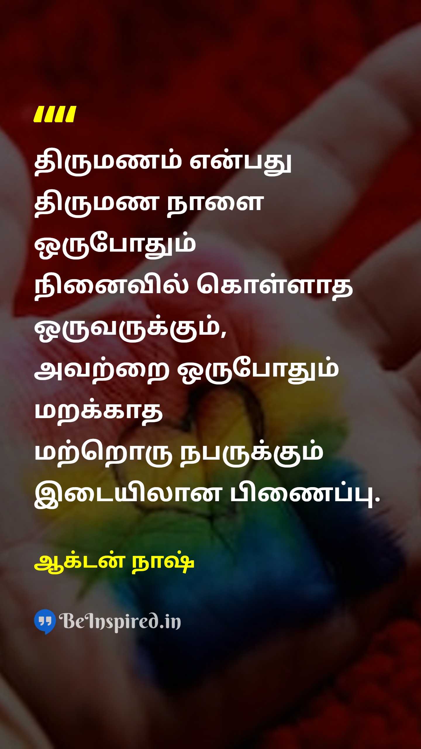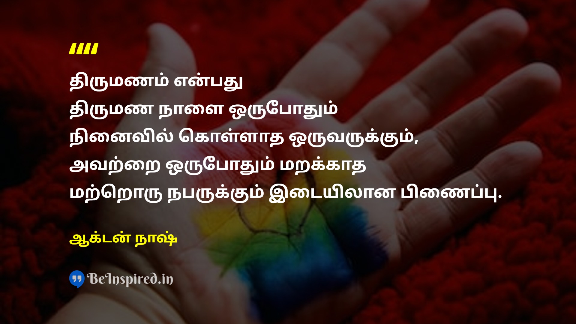 திருமணம் என்பது திருமண நாளை ஒருபோதும் நினைவில் கொள்ளாத ஒருவருக்கும், அவற்றை ஒருபோதும் மறக்காத மற்றொரு நபருக்கும் இடையிலான பிணைப்பு.