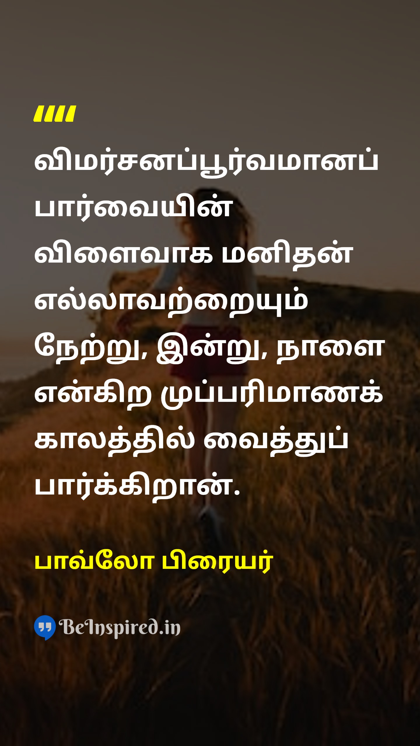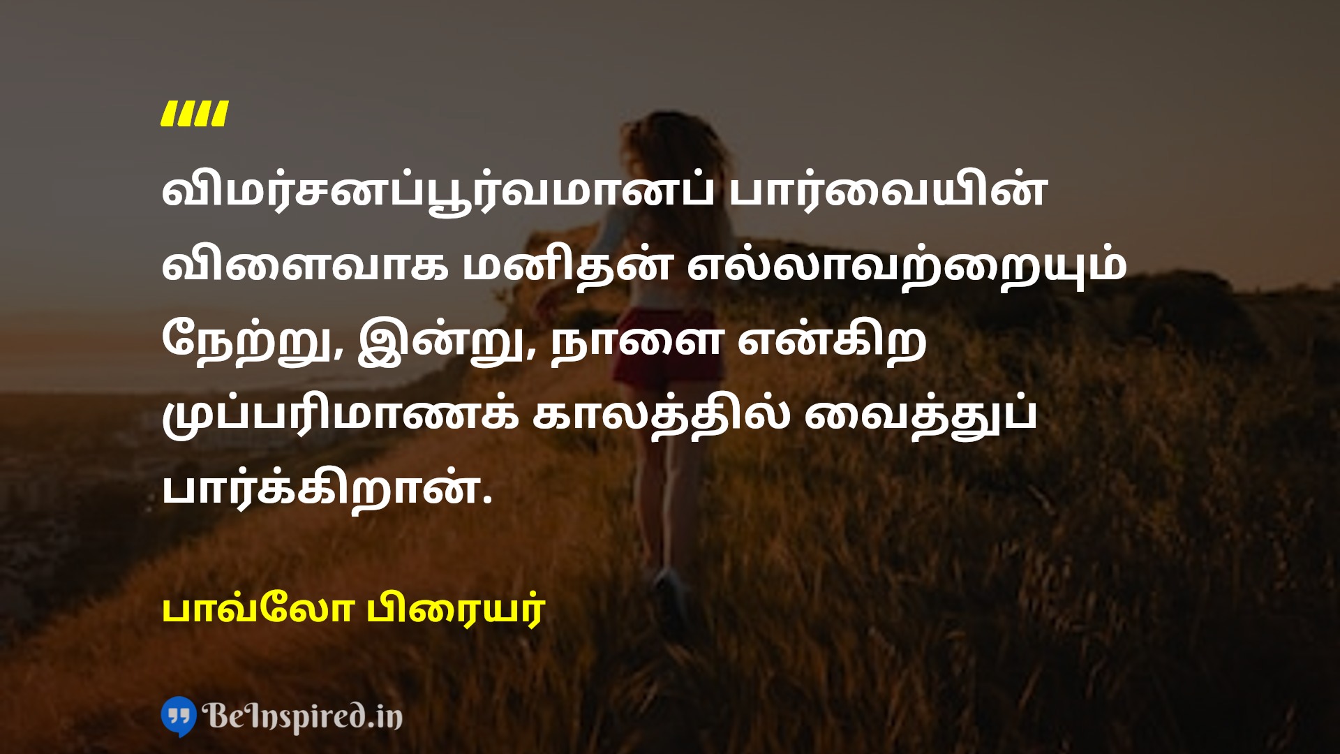 விமர்சனப்பூர்வமானப் பார்வையின் விளைவாக மனிதன் எல்லாவற்றையும் நேற்று, இன்று, நாளை என்கிற முப்பரிமாணக் காலத்தில் வைத்துப் பார்க்கிறான்.