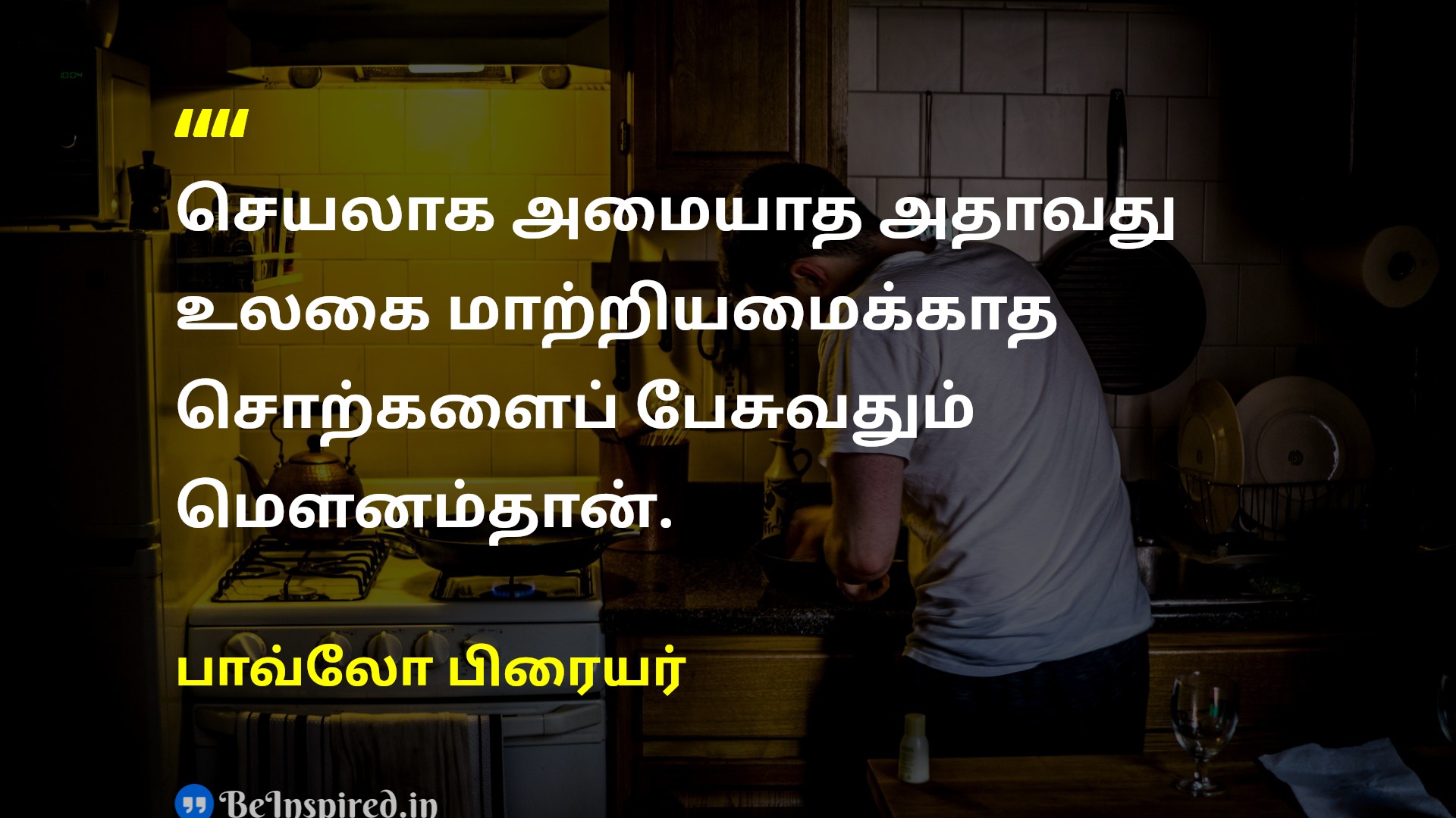 செயலாக அமையாத அதாவது உலகை மாற்றியமைக்காத சொற்களைப் பேசுவதும் மௌனம்தான்.