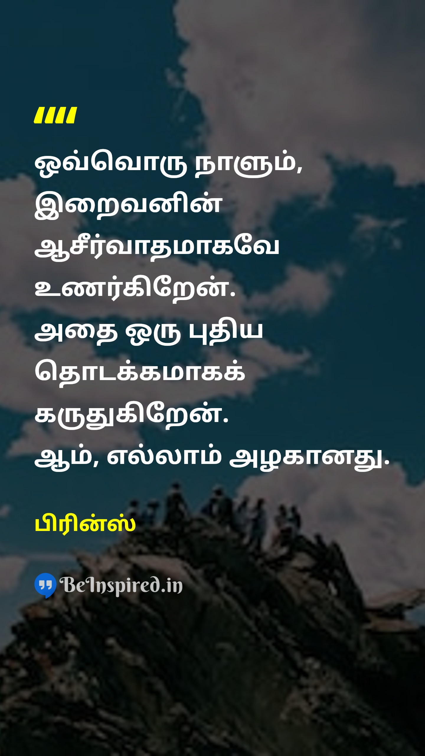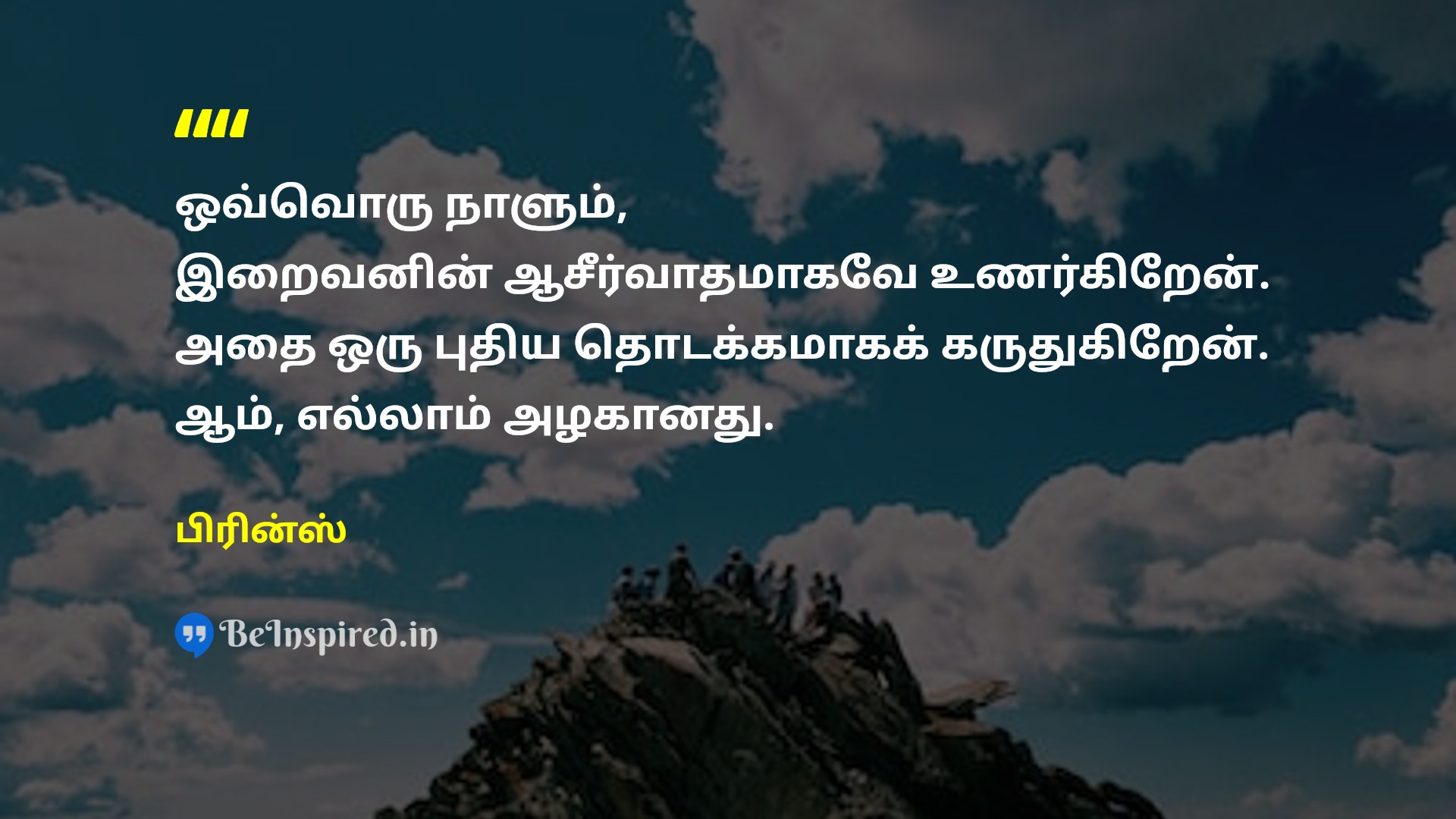 ஒவ்வொரு நாளும், இறைவனின் ஆசீர்வாதமாகவே உணர்கிறேன். அதை ஒரு புதிய தொடக்கமாகக் கருதுகிறேன். ஆம், எல்லாம் அழகானது.
