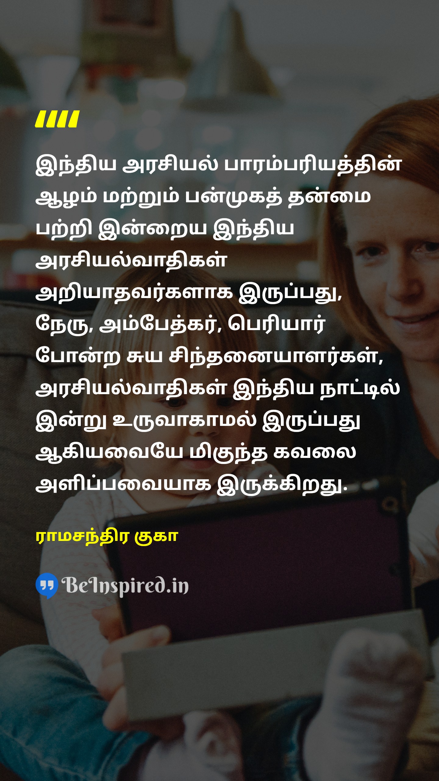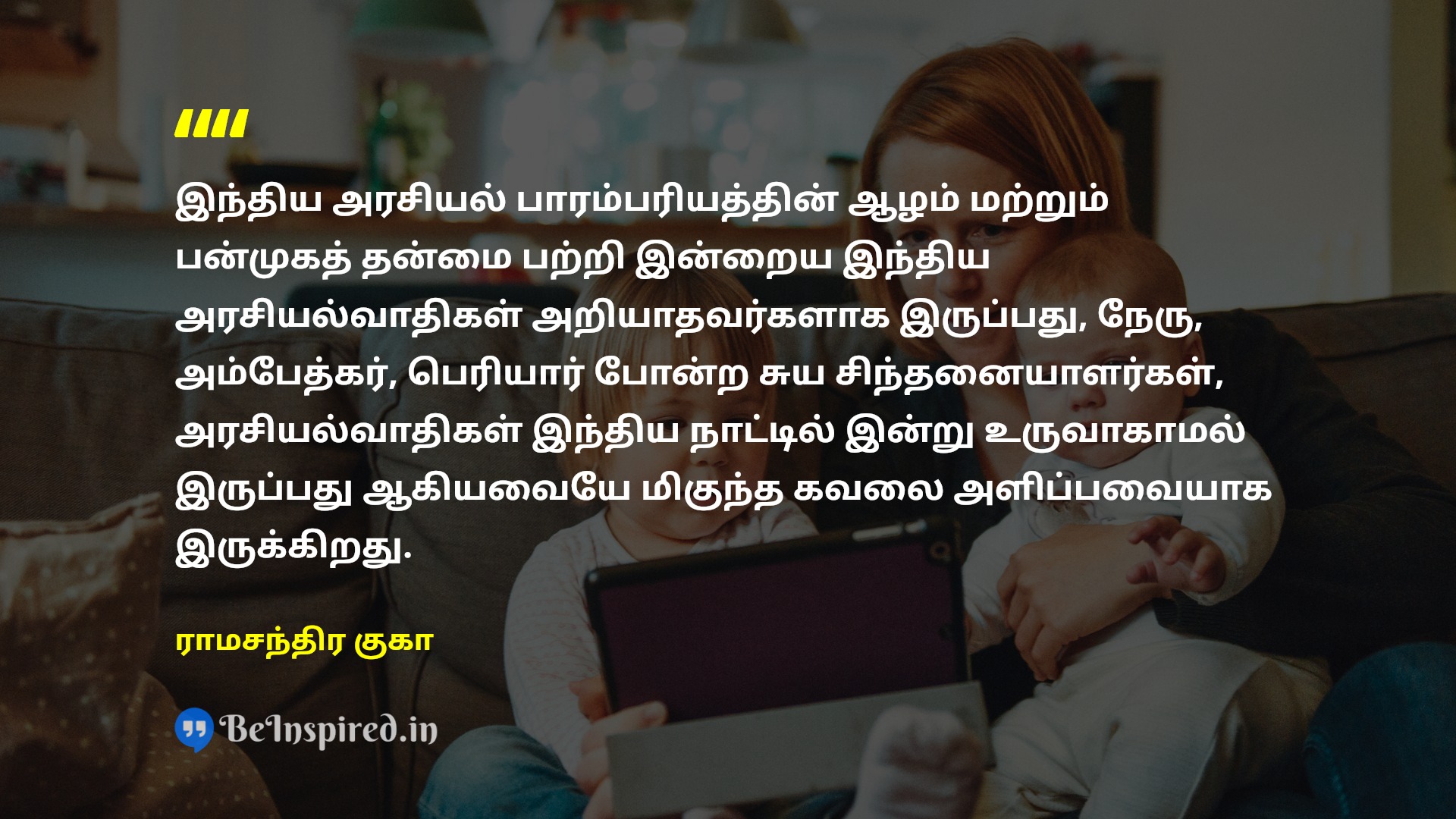 இந்திய அரசியல் பாரம்பரியத்தின் ஆழம் மற்றும் பன்முகத் தன்மை பற்றி இன்றைய இந்திய அரசியல்வாதிகள் அறியாதவர்களாக இருப்பது, நேரு, அம்பேத்கர், பெரியார் போன்ற சுய சிந்தனையாளர்கள், அரசியல்வாதிகள் இந்திய நாட்டில் இன்று உருவாகாமல் இருப்பது ஆகியவையே மிகுந்த கவலை அளிப்பவையாக இருக்கிறது.