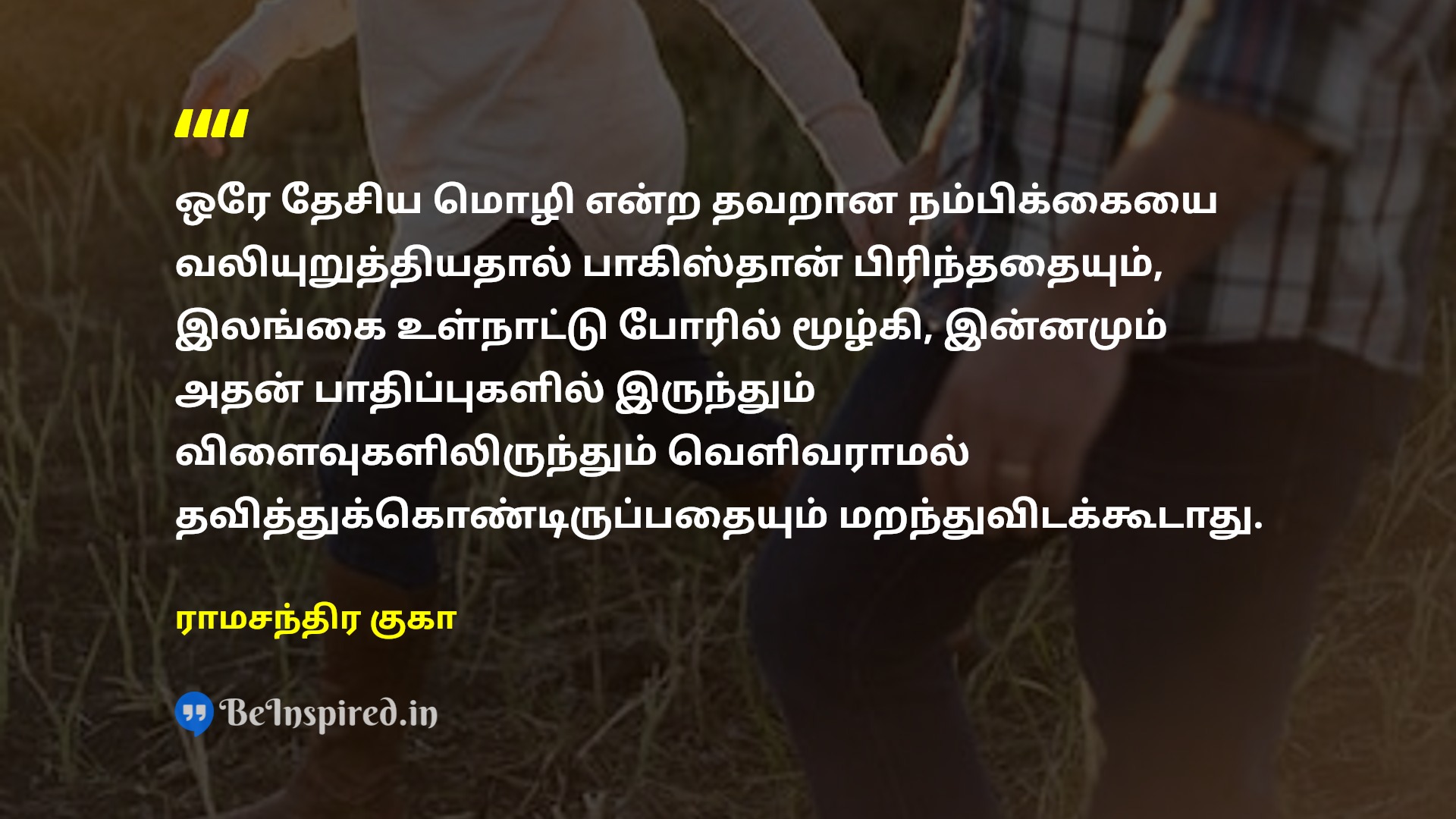 ஒரே தேசிய மொழி என்ற தவறான நம்பிக்கையை வலியுறுத்தியதால் பாகிஸ்தான் பிரிந்ததையும், இலங்கை உள்நாட்டு போரில் மூழ்கி, இன்னமும் அதன் பாதிப்புகளில் இருந்தும் விளைவுகளிலிருந்தும் வெளிவராமல் தவித்துக்கொண்டிருப்பதையும் மறந்துவிடக்கூடாது.