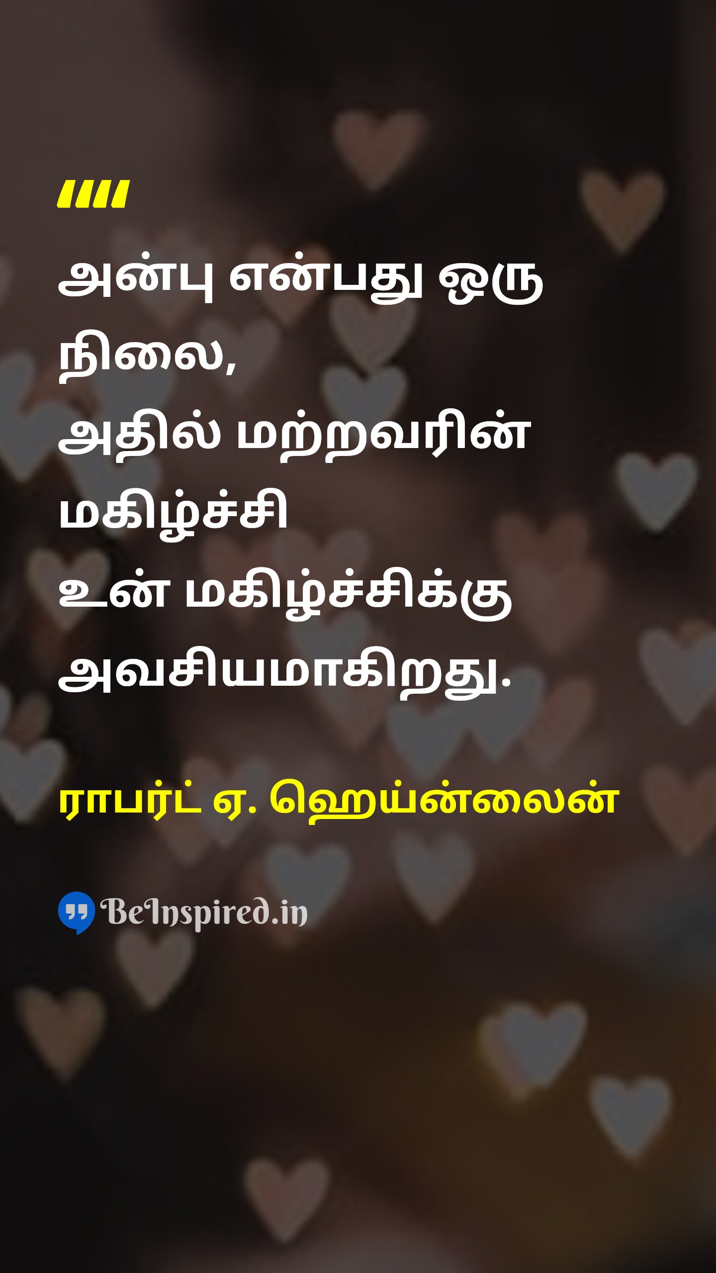 அன்பு என்பது ஒரு நிலை, அதில் மற்றவரின் மகிழ்ச்சி உன் மகிழ்ச்சிக்கு அவசியமாகிறது.
