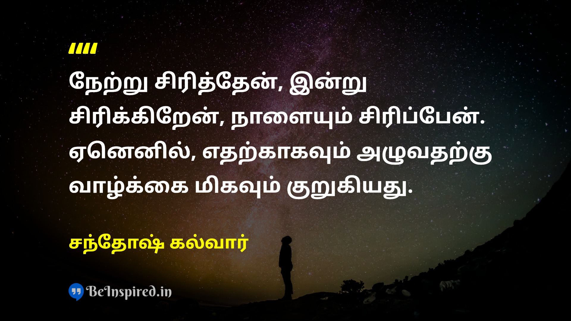 நேற்று சிரித்தேன், இன்று சிரிக்கிறேன், நாளையும் சிரிப்பேன். ஏனெனில், எதற்காகவும் அழுவதற்கு வாழ்க்கை மிகவும் குறுகியது.