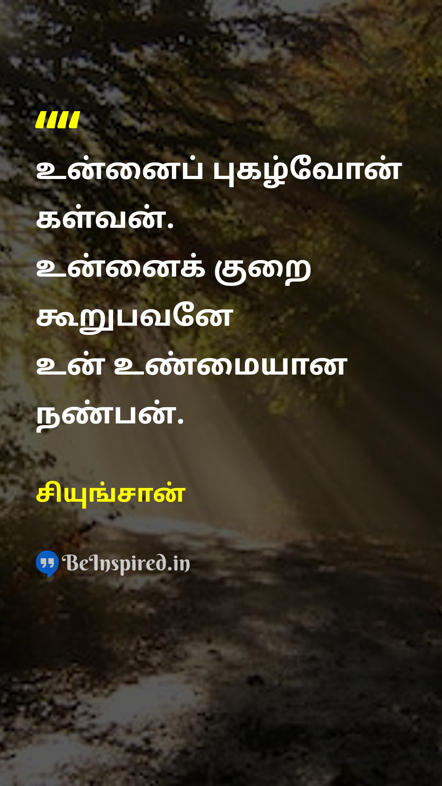 உன்னைப் புகழ்வோன் கள்வன். உன்னைக் குறை கூறுபவனே உன் உண்மையான நண்பன்.