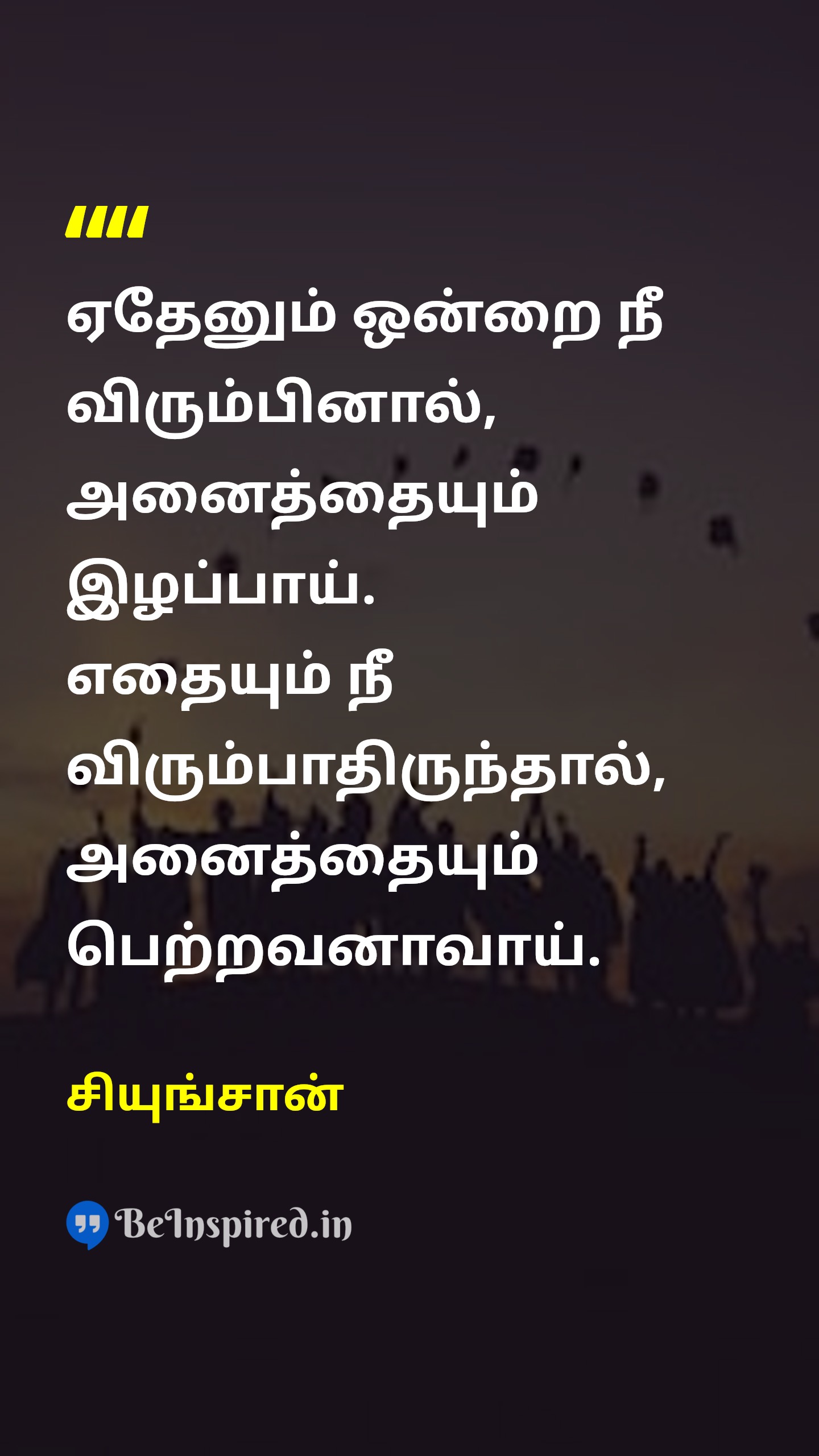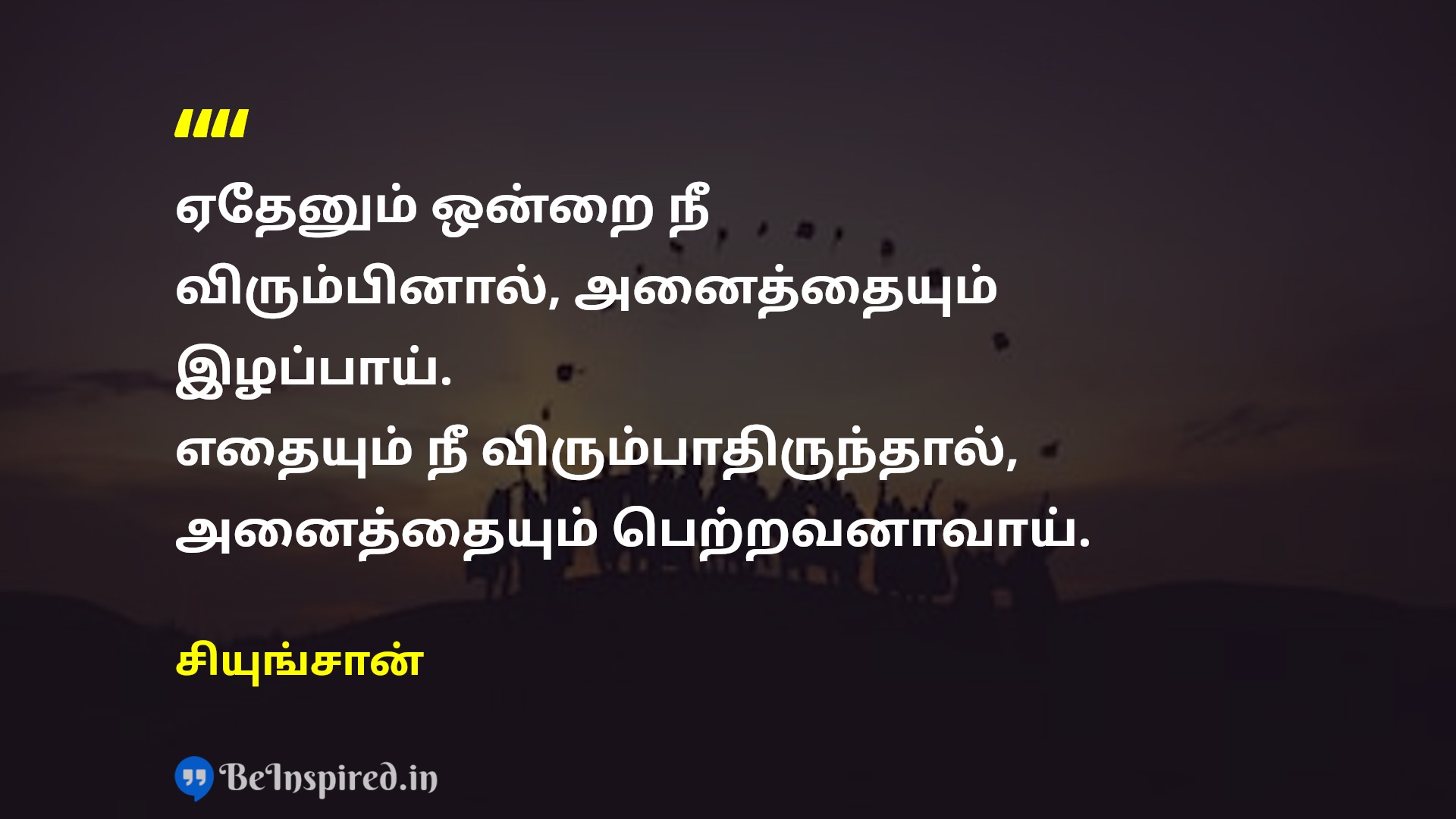 ஏதேனும் ஒன்றை நீ விரும்பினால், அனைத்தையும் இழப்பாய். எதையும் நீ விரும்பாதிருந்தால், அனைத்தையும் பெற்றவனாவாய்.