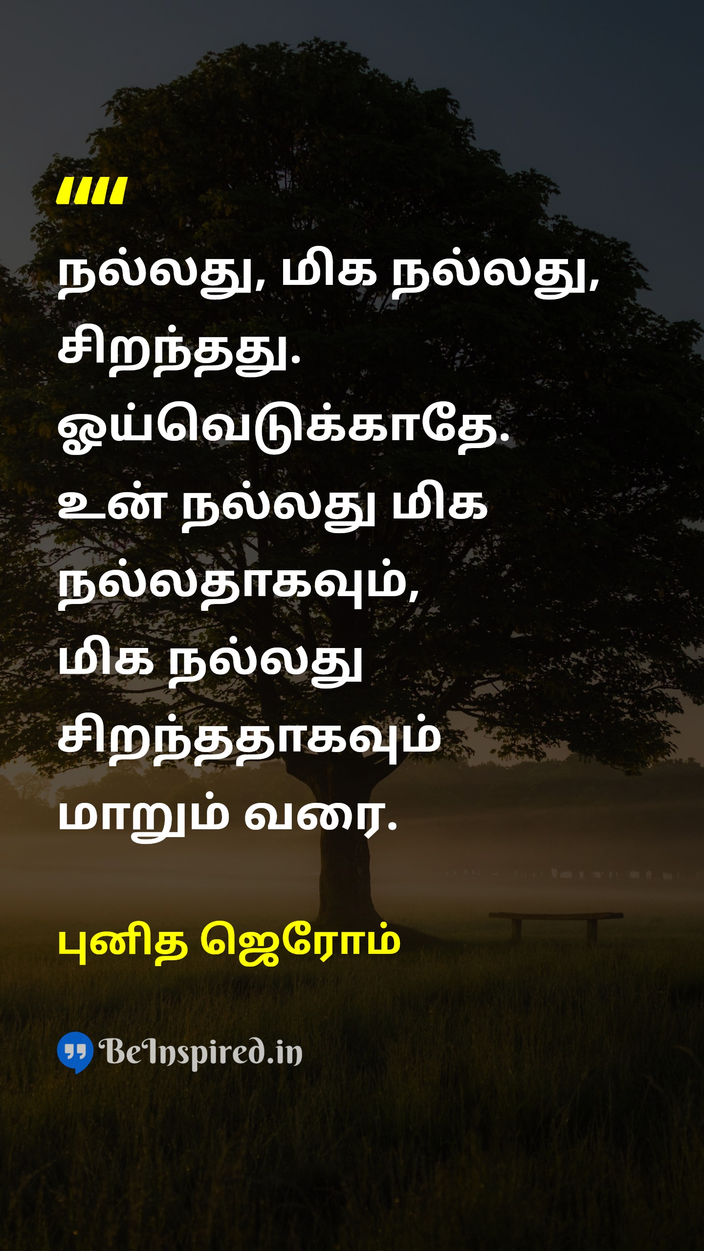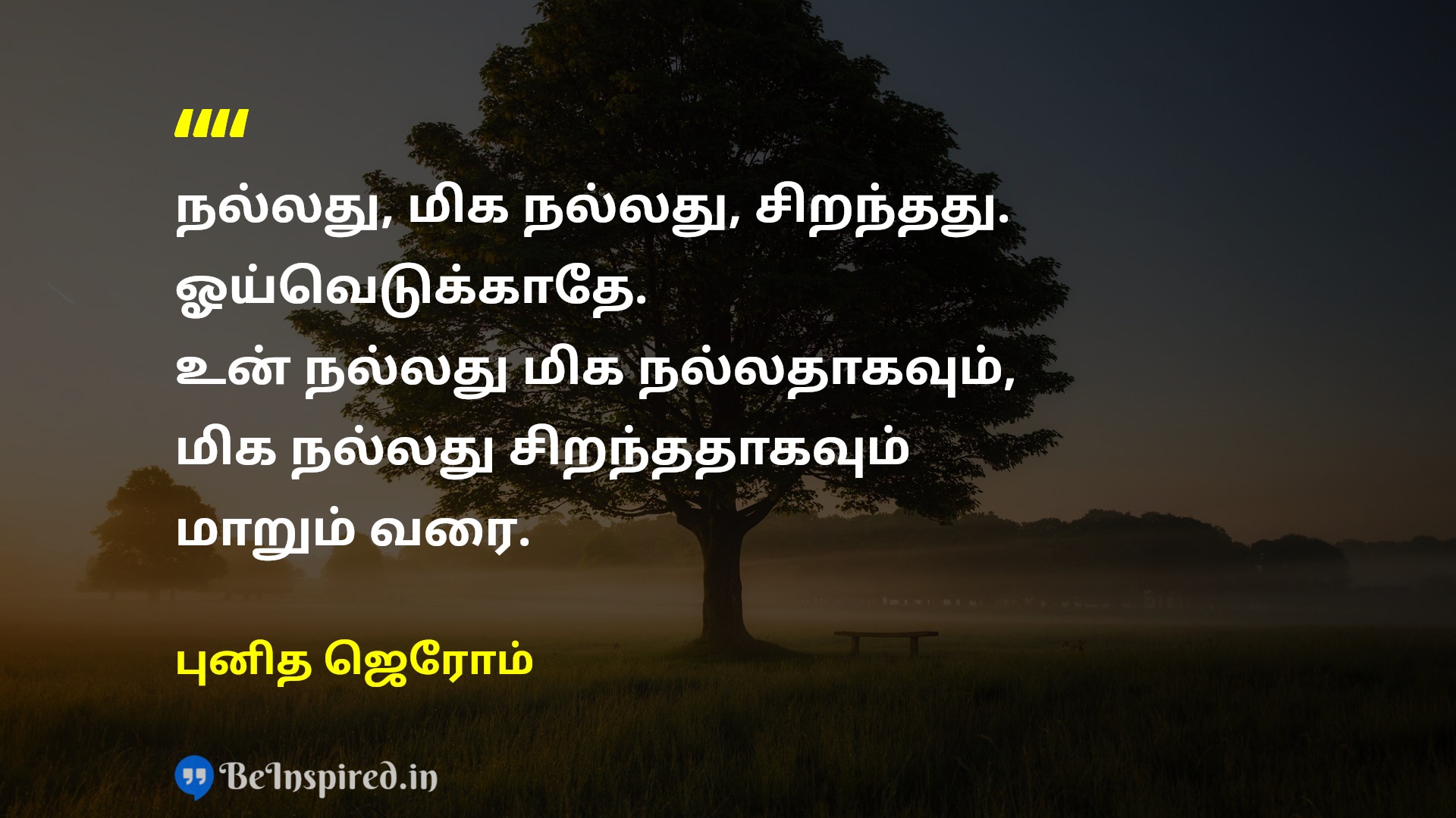 நல்லது, மிக நல்லது, சிறந்தது. ஓய்வெடுக்காதே. உன் நல்லது மிக நல்லதாகவும், மிக நல்லது சிறந்ததாகவும் மாறும் வரை.