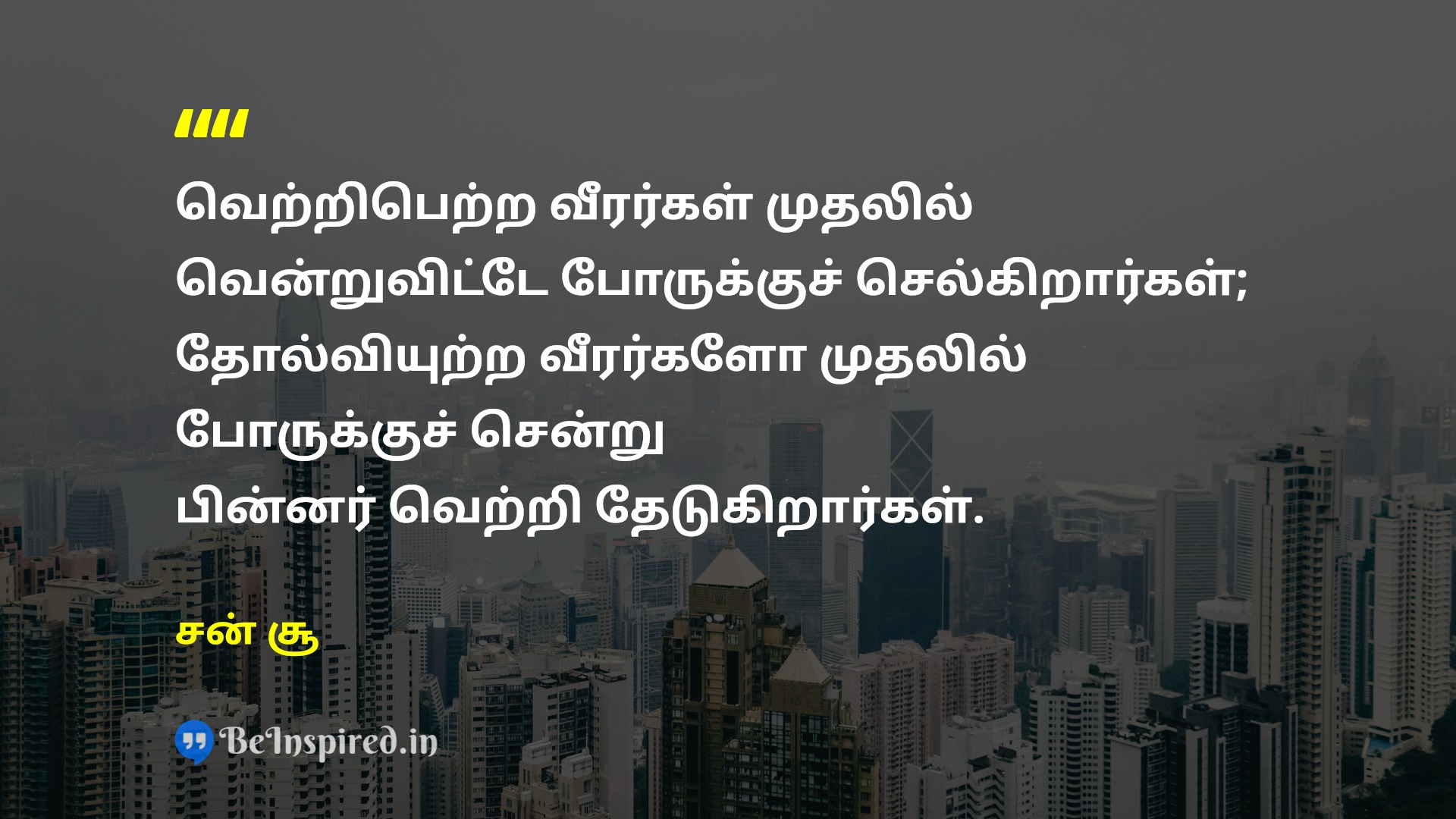 வெற்றிபெற்ற வீரர்கள் முதலில் வென்றுவிட்டே போருக்குச் செல்கிறார்கள்; தோல்வியுற்ற வீரர்களோ முதலில் போருக்குச் சென்று பின்னர் வெற்றி தேடுகிறார்கள்.