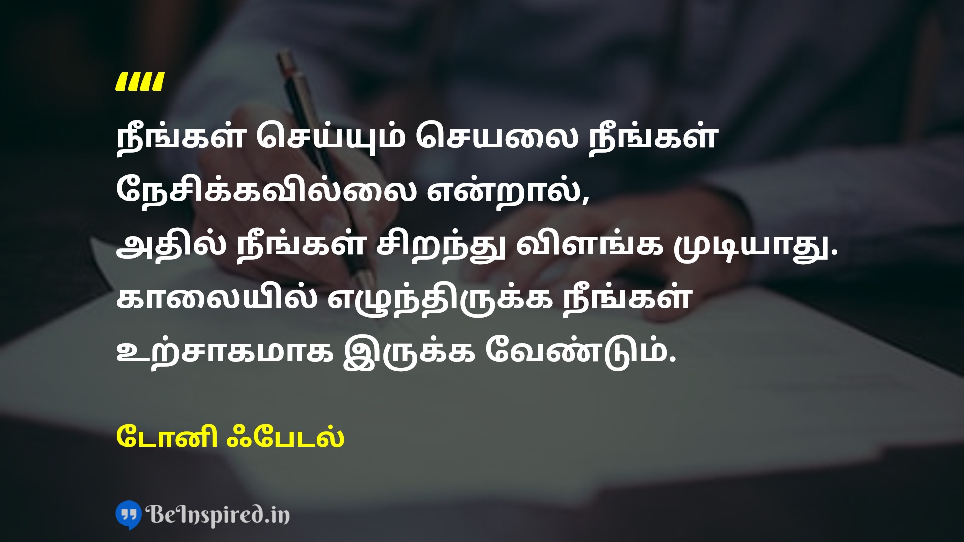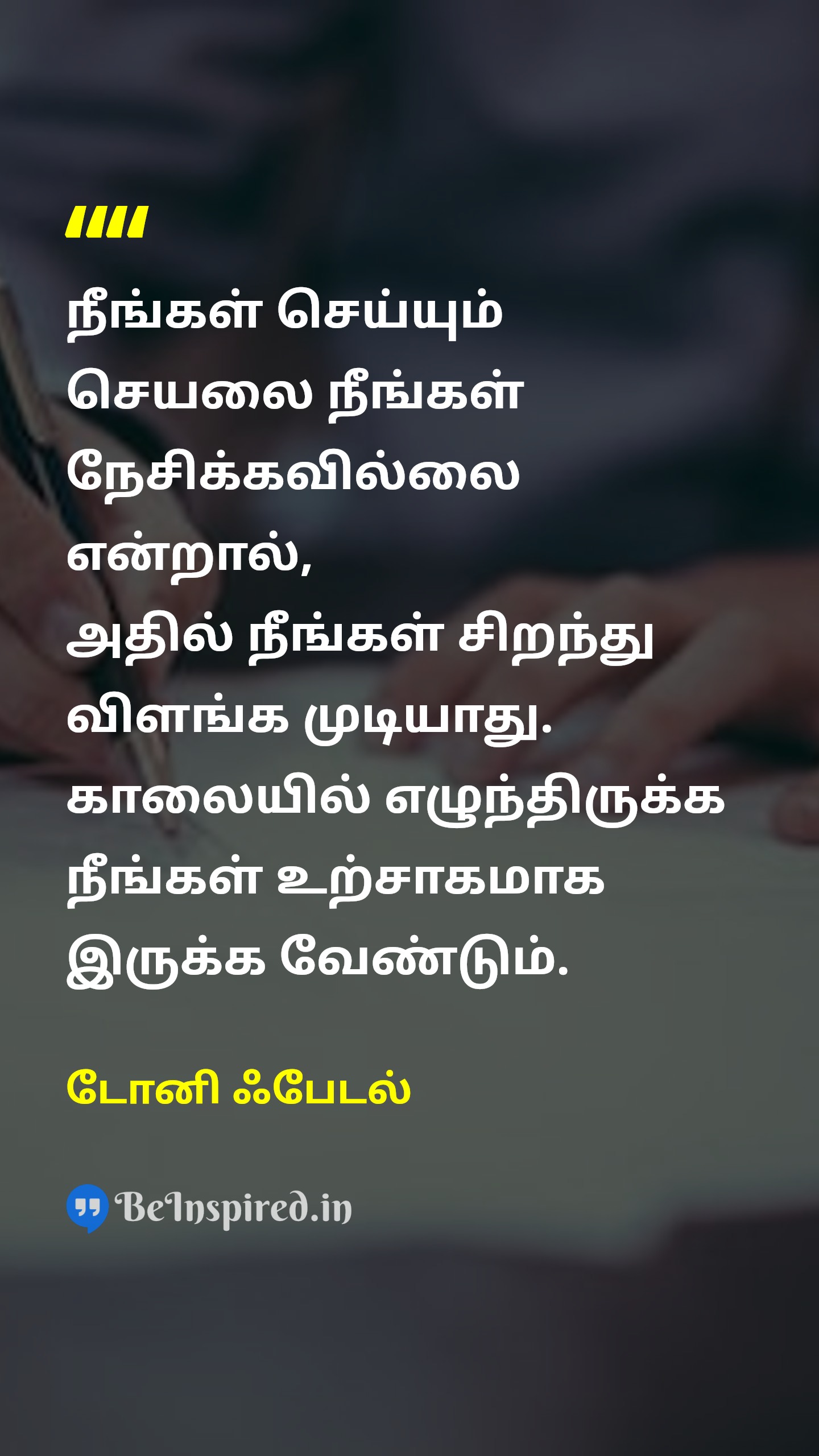நீங்கள் செய்யும் செயலை நீங்கள் நேசிக்கவில்லை என்றால், அதில் நீங்கள் சிறந்து விளங்க முடியாது. காலையில் எழுந்திருக்க நீங்கள் உற்சாகமாக இருக்க வேண்டும்.