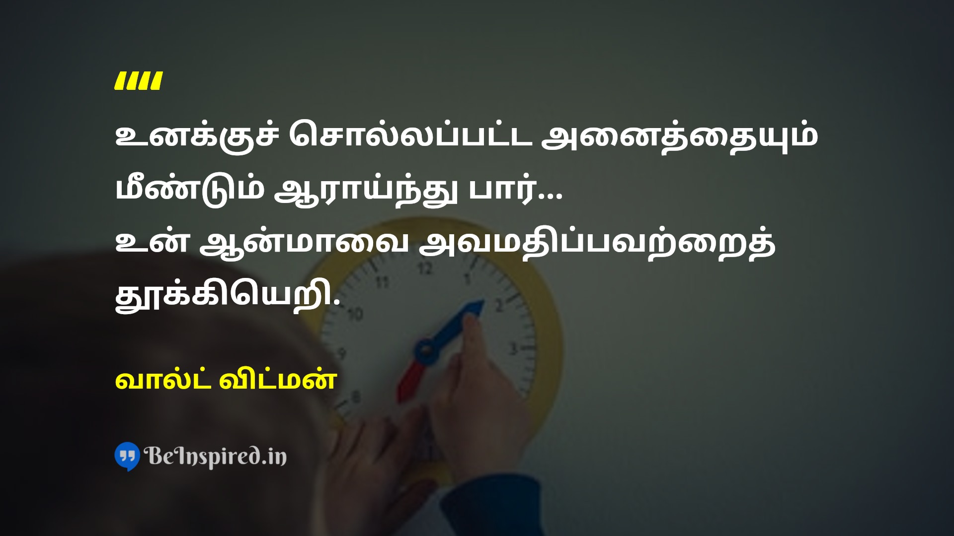 உனக்குச் சொல்லப்பட்ட அனைத்தையும் மீண்டும் ஆராய்ந்து பார்... உன் ஆன்மாவை அவமதிப்பவற்றைத் தூக்கியெறி.