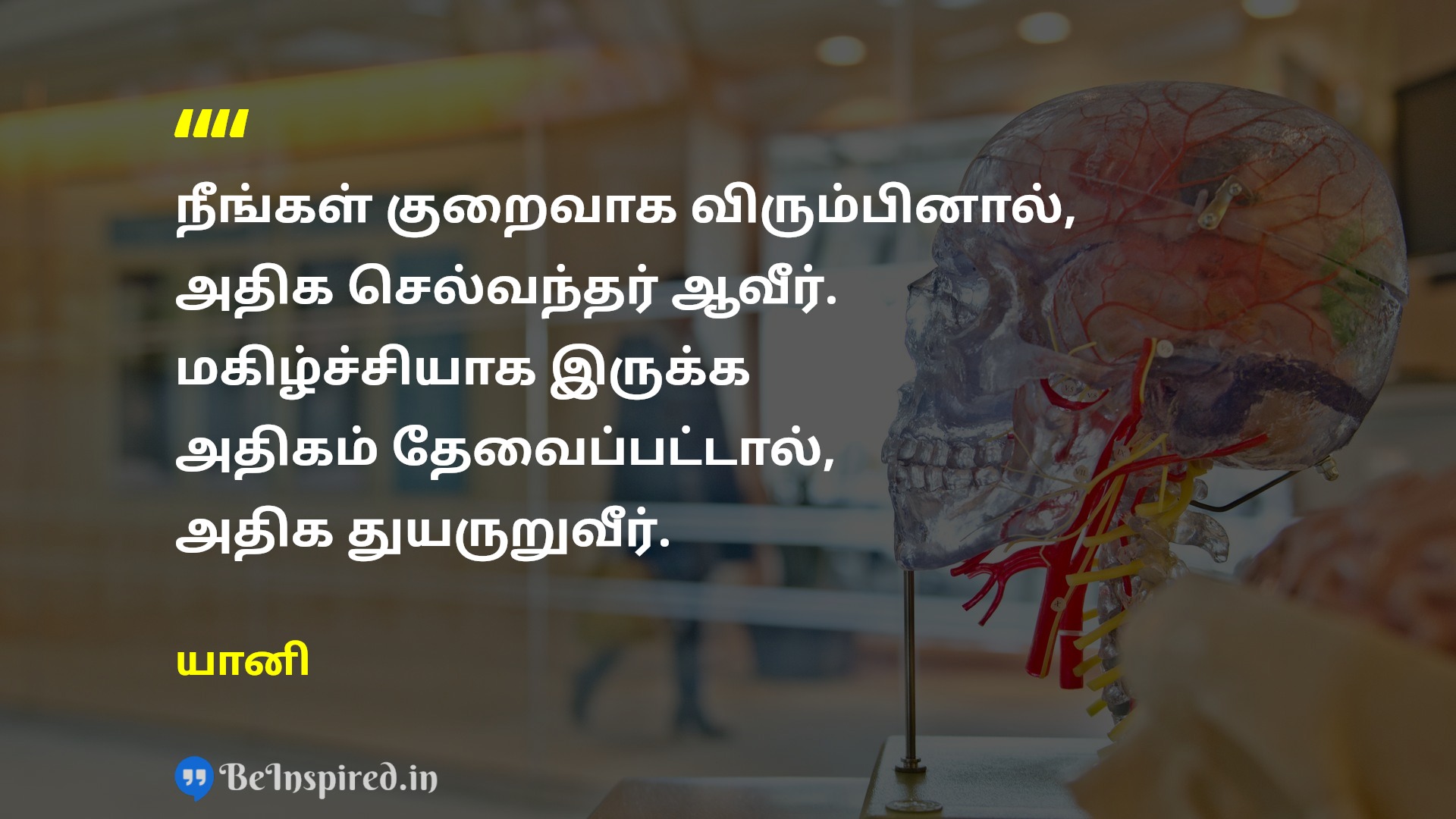 நீங்கள் குறைவாக விரும்பினால், அதிக செல்வந்தர் ஆவீர். மகிழ்ச்சியாக இருக்க அதிகம் தேவைப்பட்டால், அதிக துயருறுவீர்.