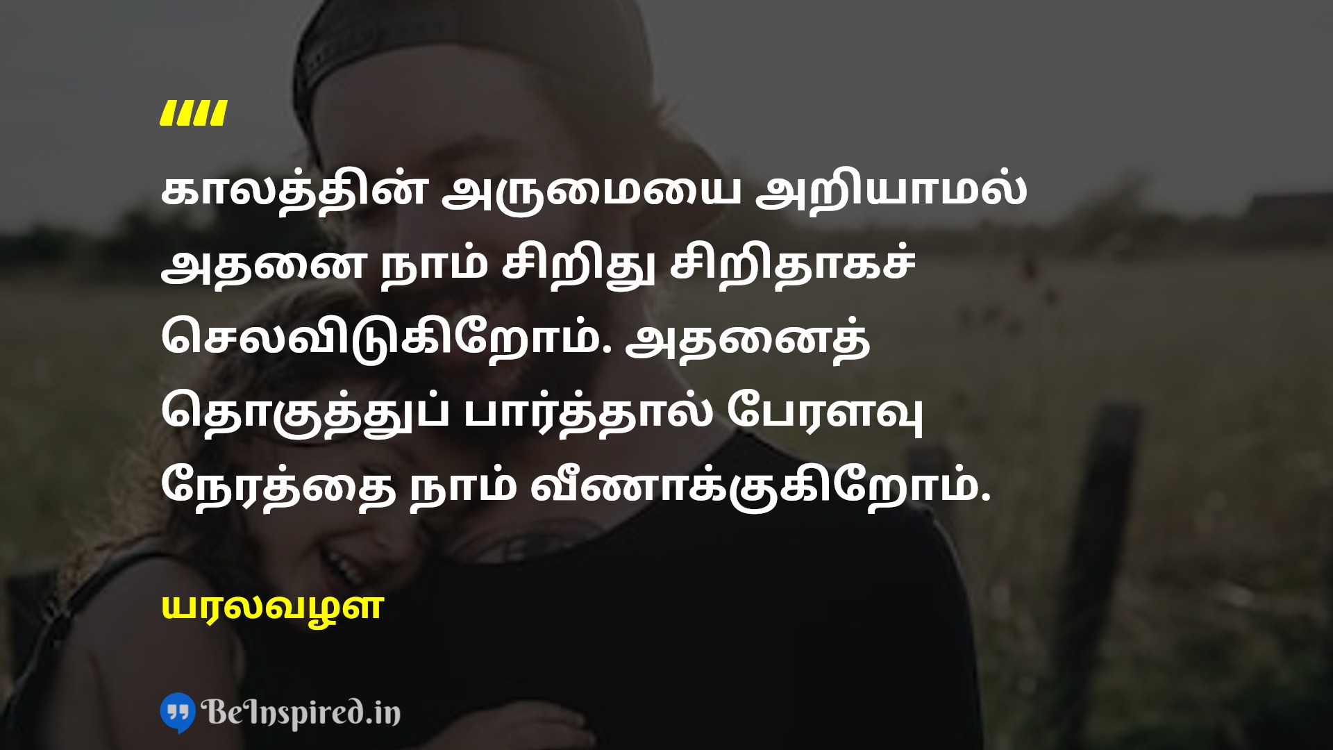 காலத்தின் அருமையை அறியாமல் அதனை நாம் சிறிது சிறிதாகச் செலவிடுகிறோம். அதனைத் தொகுத்துப் பார்த்தால் பேரளவு நேரத்தை நாம் வீணாக்குகிறோம்.