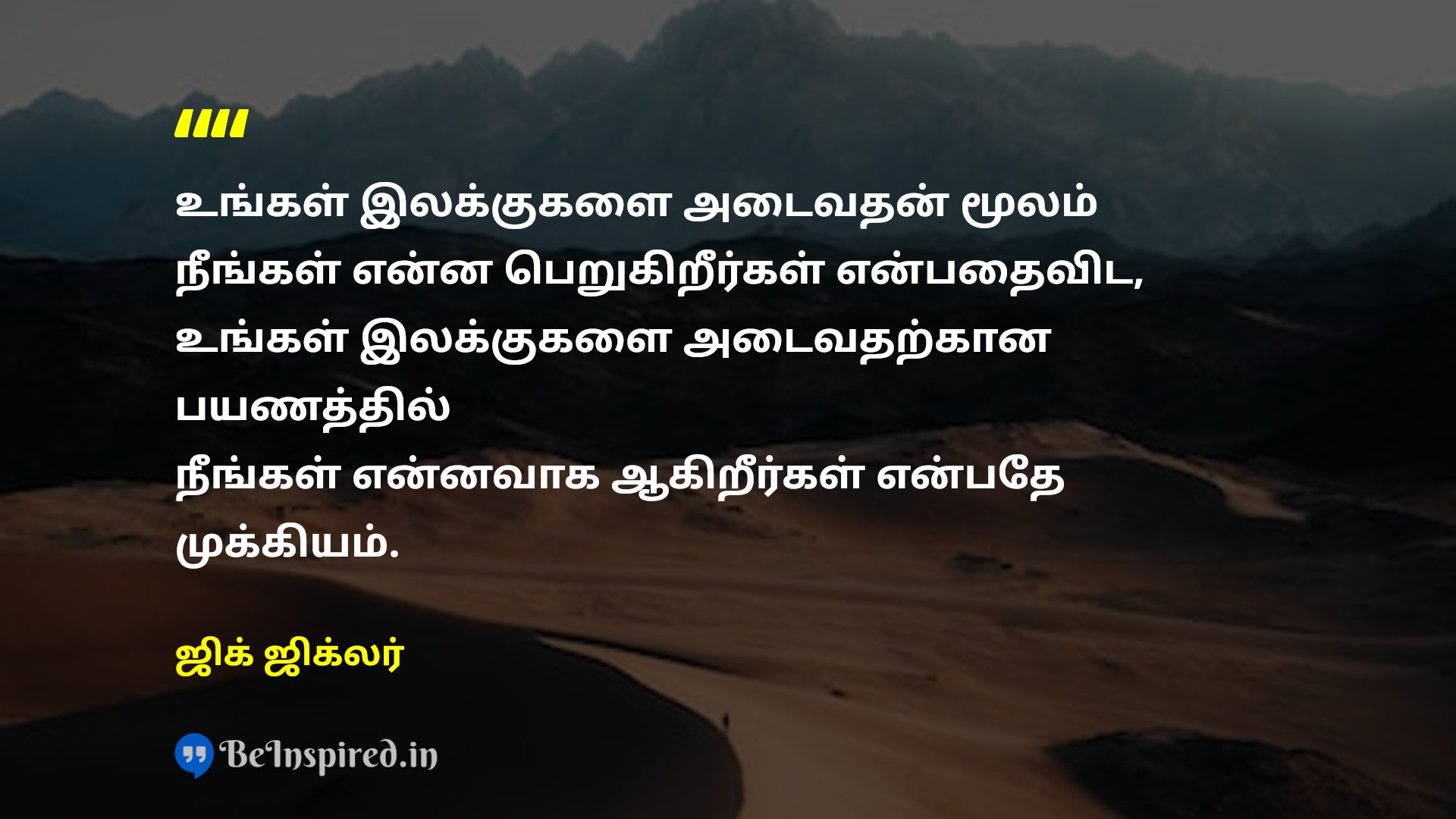 உங்கள் இலக்குகளை அடைவதன் மூலம் நீங்கள் என்ன பெறுகிறீர்கள் என்பதைவிட, உங்கள் இலக்குகளை அடைவதற்கான பயணத்தில் நீங்கள் என்னவாக ஆகிறீர்கள் என்பதே முக்கியம்.