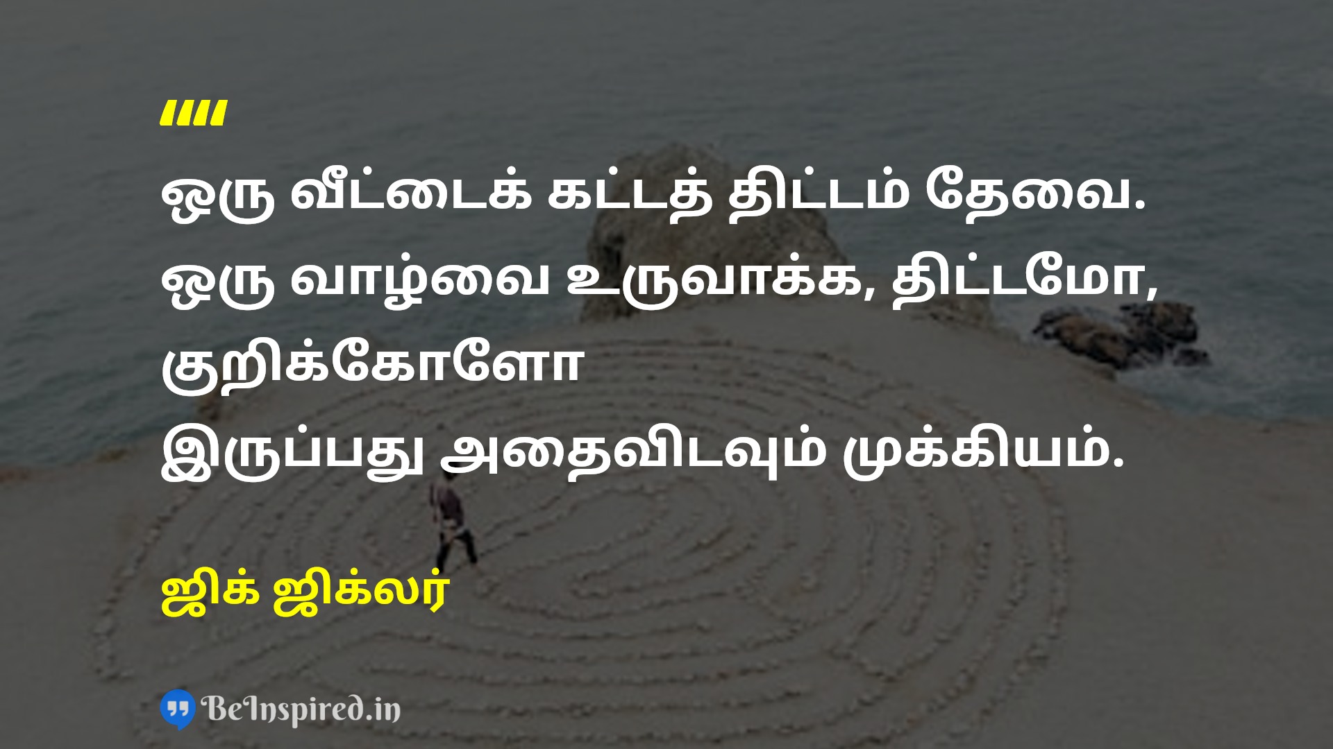 ஒரு வீட்டைக் கட்டத் திட்டம் தேவை. ஒரு வாழ்வை உருவாக்க, திட்டமோ, குறிக்கோளோ இருப்பது அதைவிடவும் முக்கியம்.