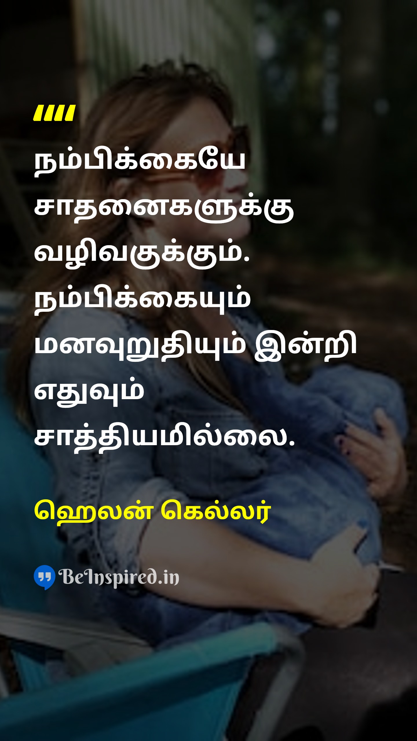 நம்பிக்கையே சாதனைகளுக்கு வழிவகுக்கும். நம்பிக்கையும் மனவுறுதியும் இன்றி எதுவும் சாத்தியமில்லை.