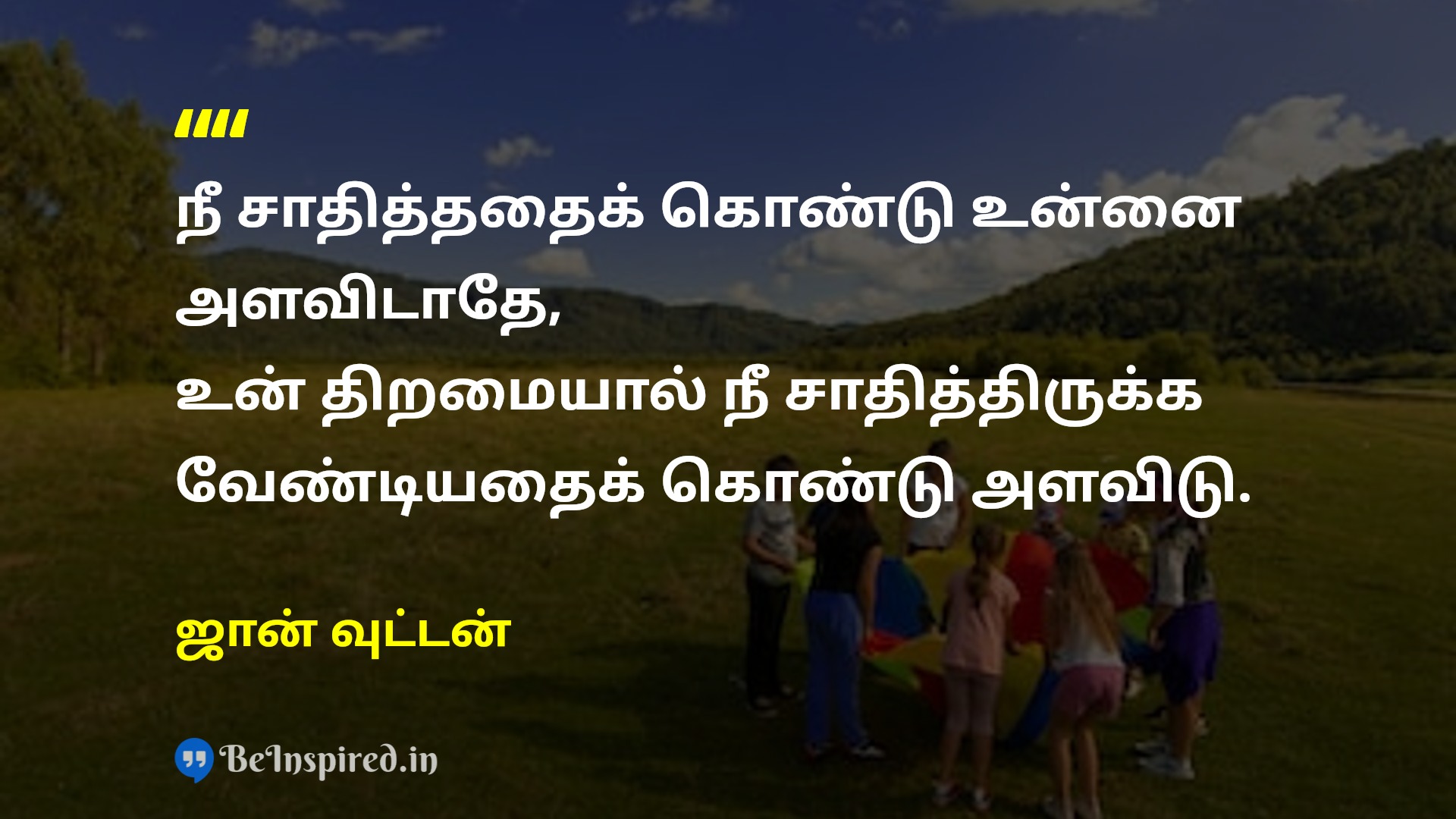 நீ சாதித்ததைக் கொண்டு உன்னை அளவிடாதே, உன் திறமையால் நீ சாதித்திருக்க வேண்டியதைக் கொண்டு அளவிடு.