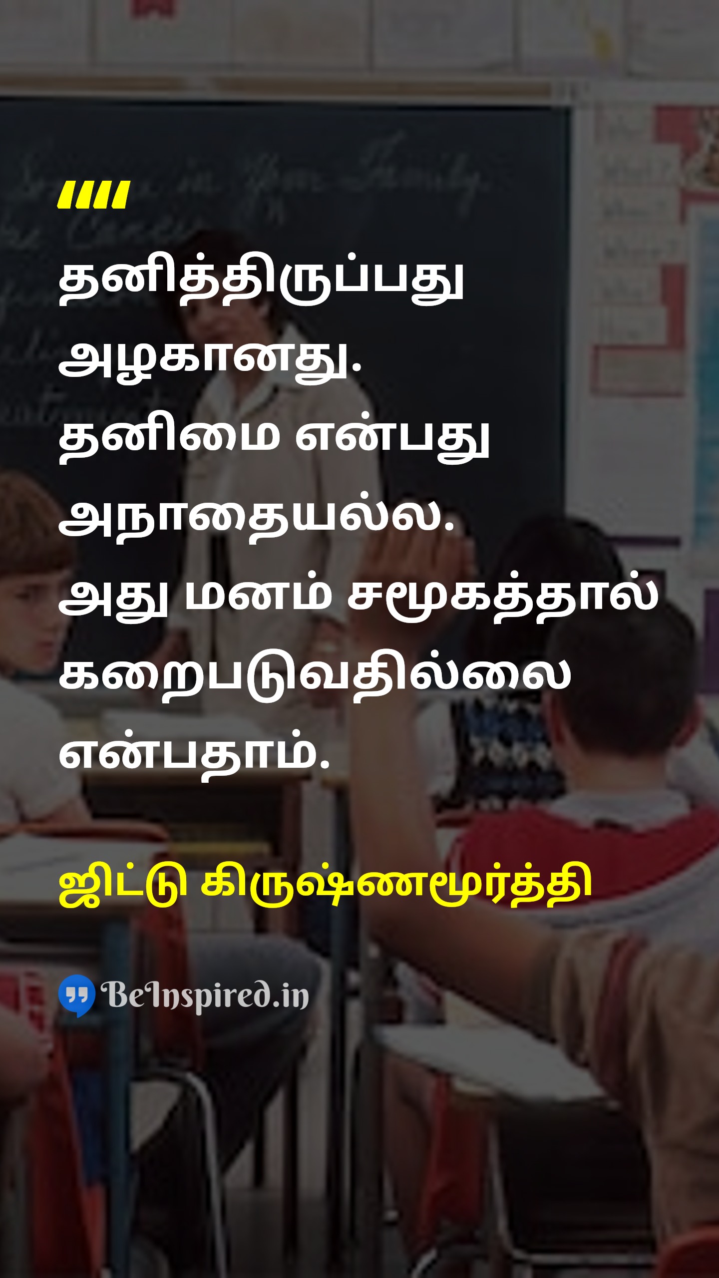 தனித்திருப்பது அழகானது. தனிமை என்பது அநாதையல்ல. அது மனம் சமூகத்தால் கறைபடுவதில்லை என்பதாம்.