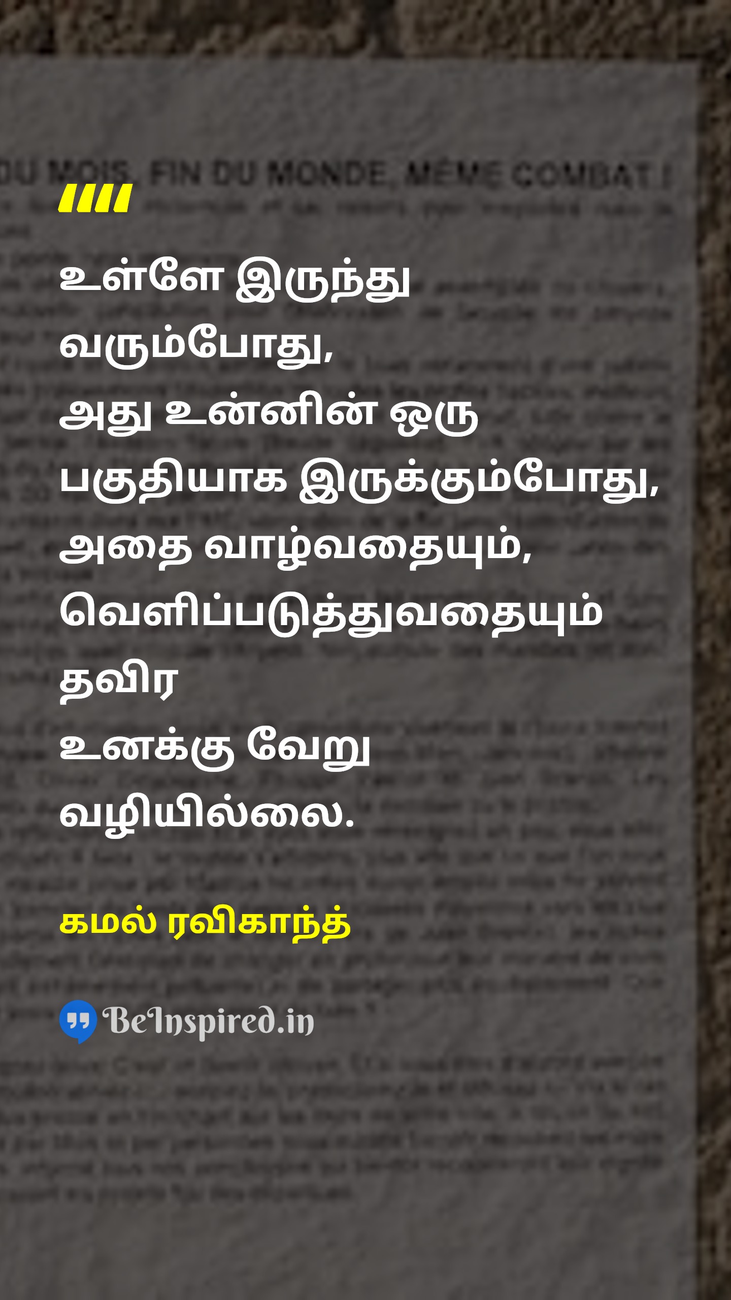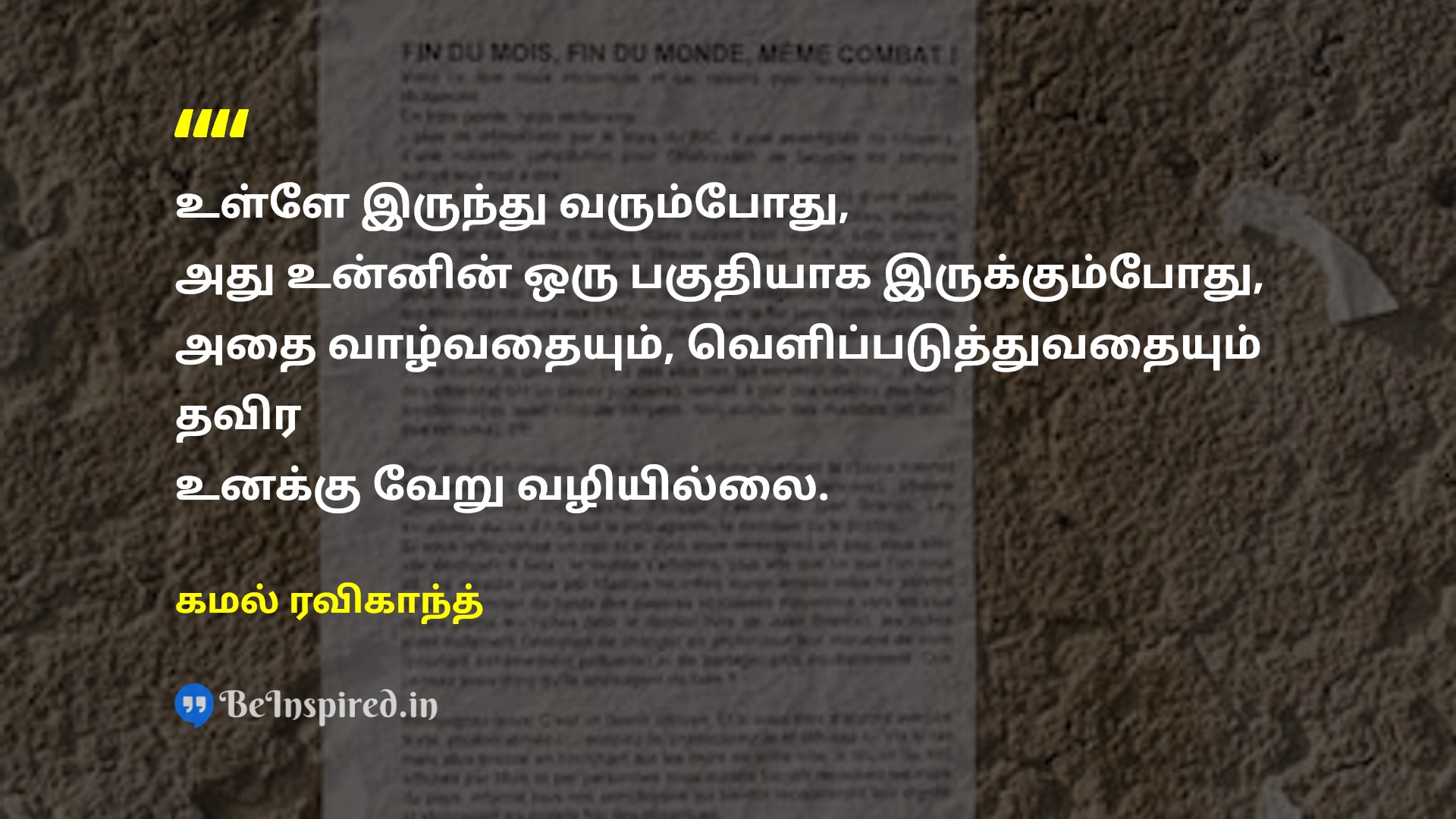 உள்ளே இருந்து வரும்போது, அது உன்னின் ஒரு பகுதியாக இருக்கும்போது, அதை வாழ்வதையும், வெளிப்படுத்துவதையும் தவிர உனக்கு வேறு வழியில்லை.