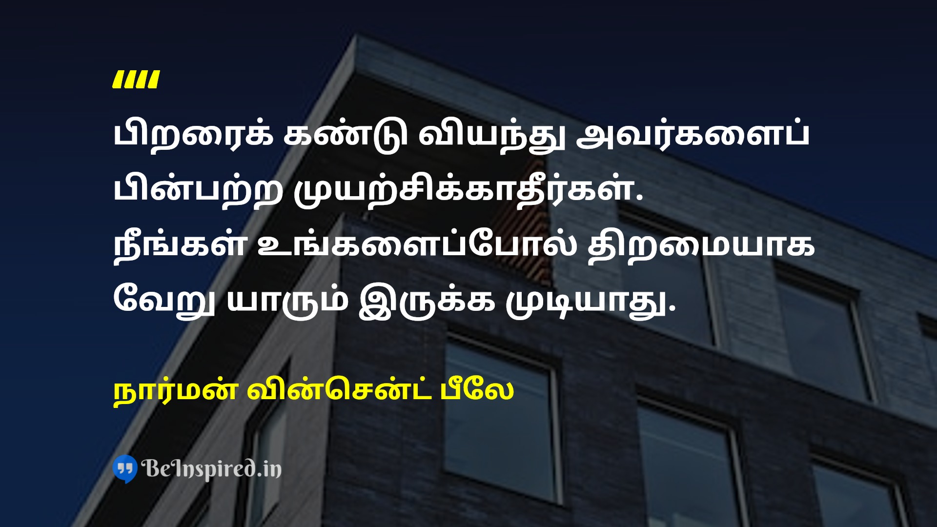 பிறரைக் கண்டு வியந்து அவர்களைப் பின்பற்ற முயற்சிக்காதீர்கள். நீங்கள் உங்களைப்போல் திறமையாக வேறு யாரும் இருக்க முடியாது.