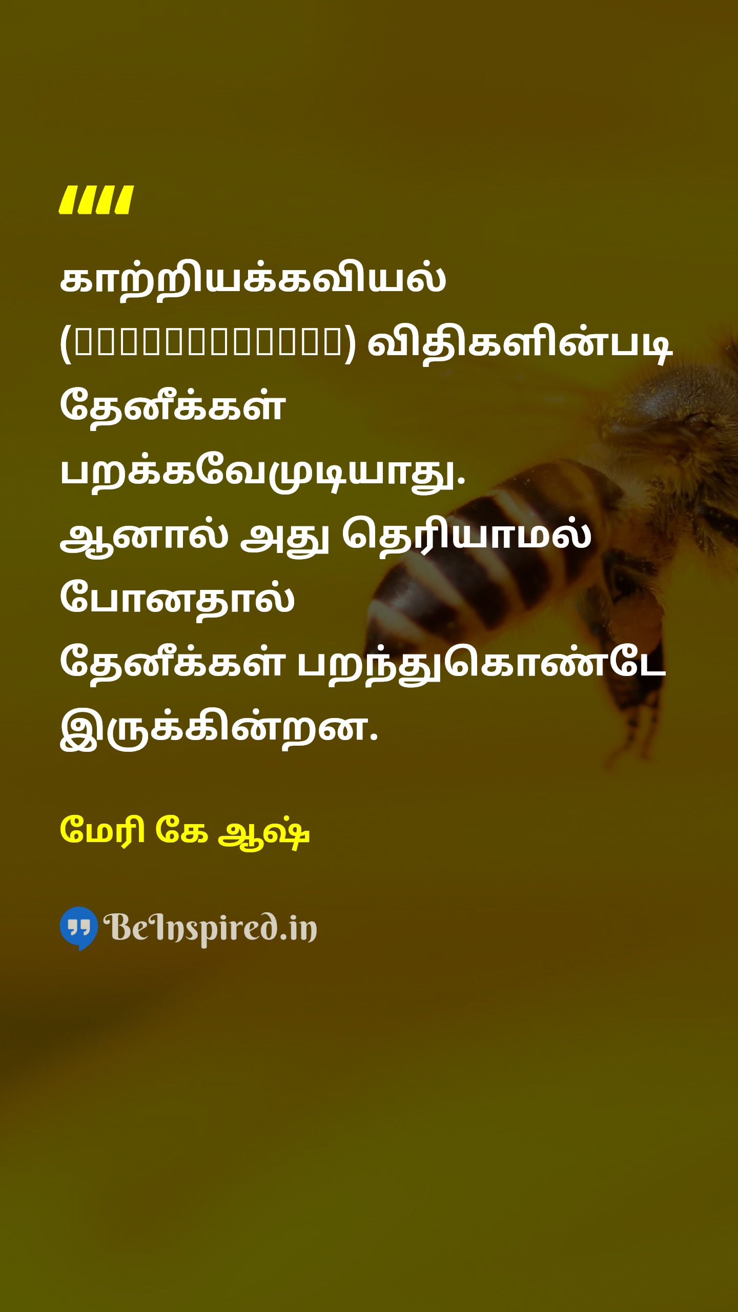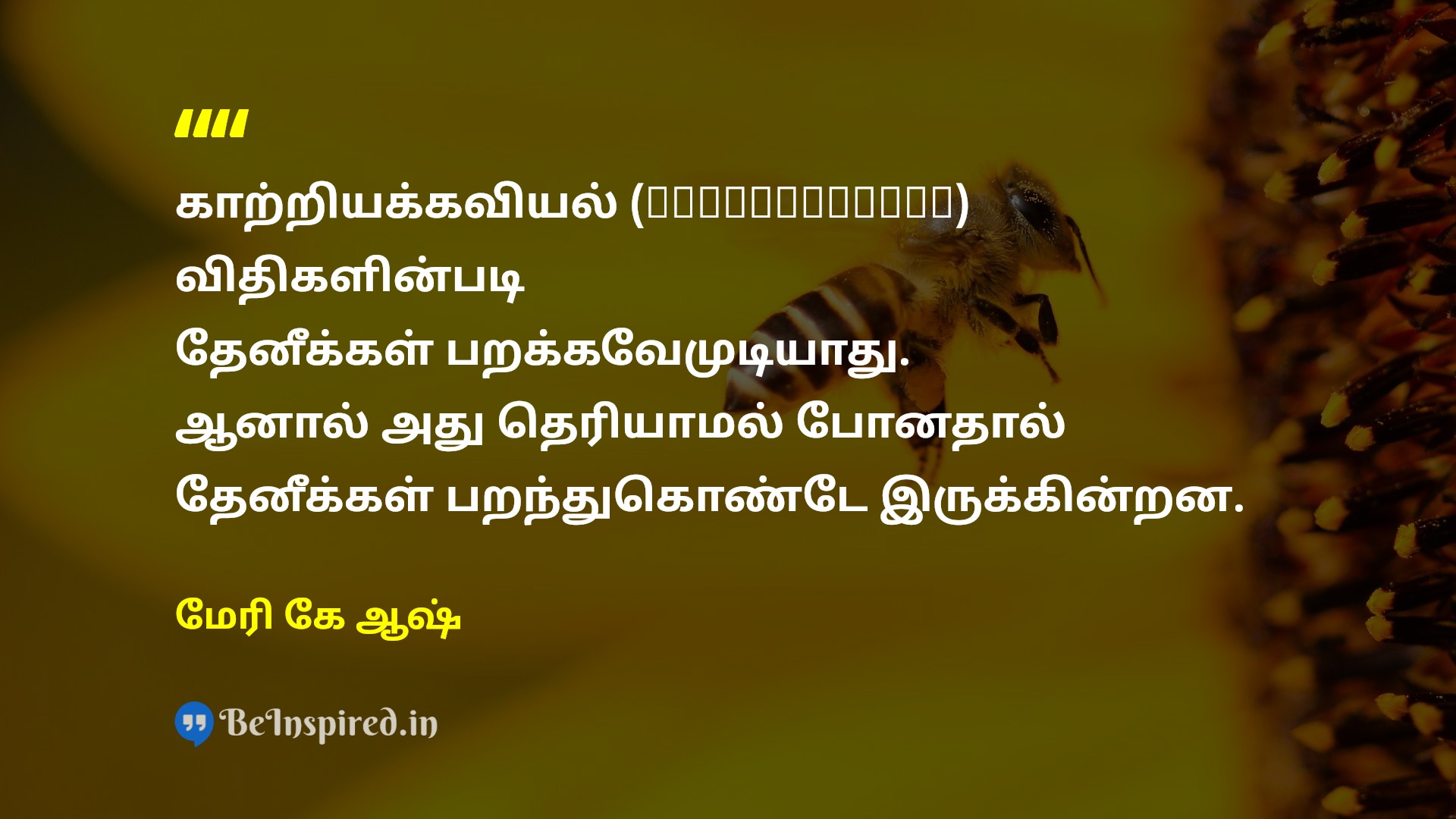 காற்றியக்கவியல் (Aerodynamics) விதிகளின்படி தேனீக்கள் பறக்கவேமுடியாது. ஆனால் அது தெரியாமல் போனதால் தேனீக்கள் பறந்துகொண்டே இருக்கின்றன.