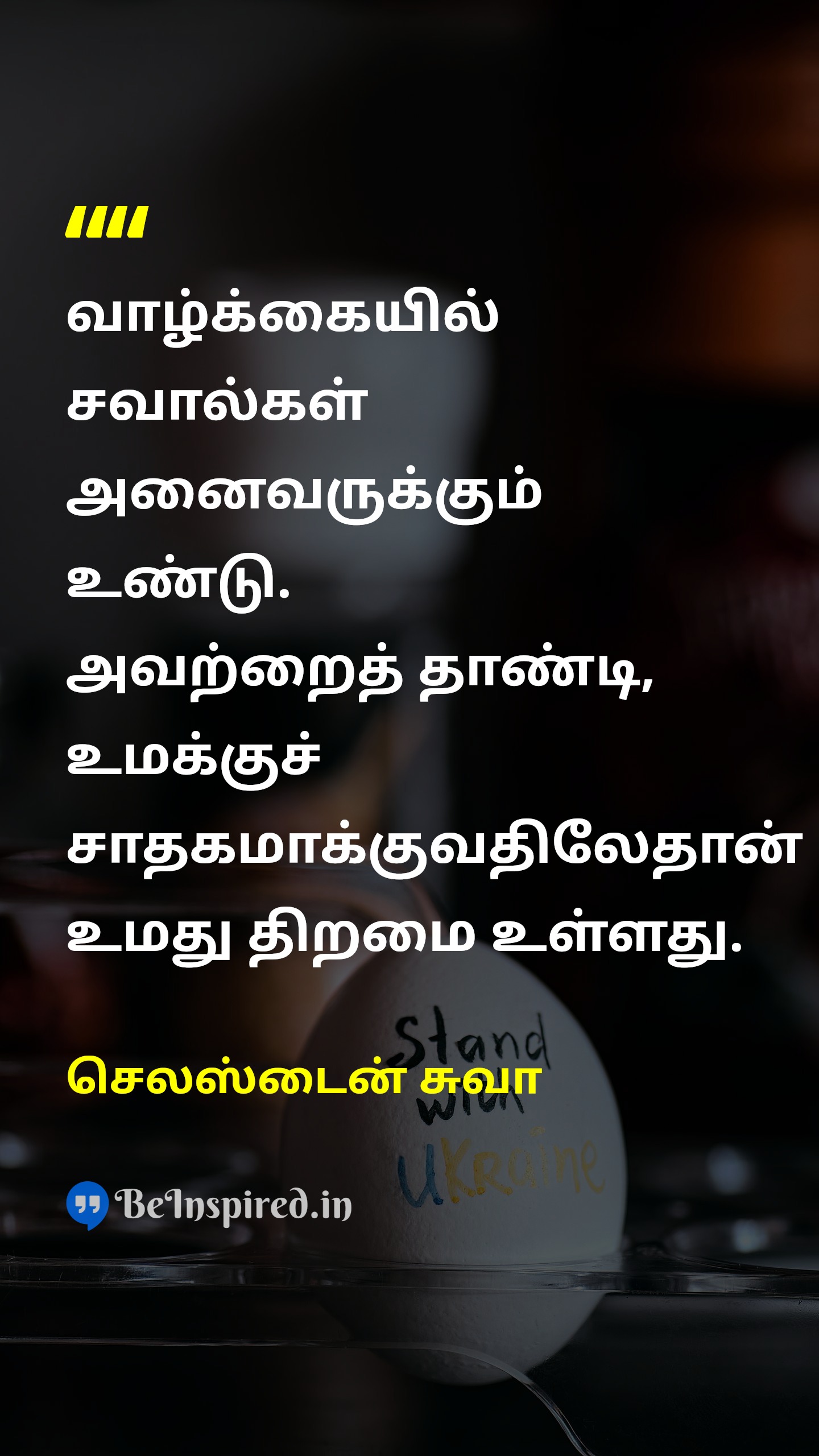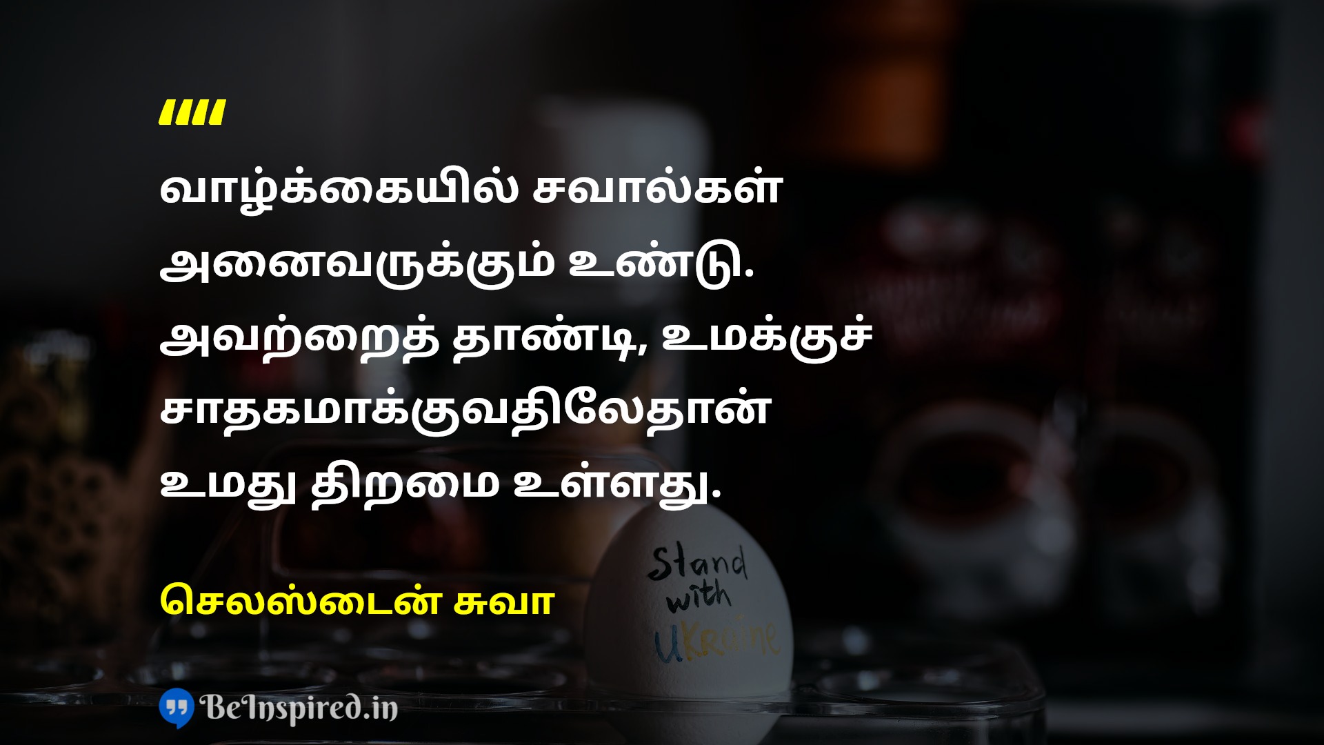 வாழ்க்கையில் சவால்கள் அனைவருக்கும் உண்டு. அவற்றைத் தாண்டி, உமக்குச் சாதகமாக்குவதிலேதான் உமது திறமை உள்ளது.