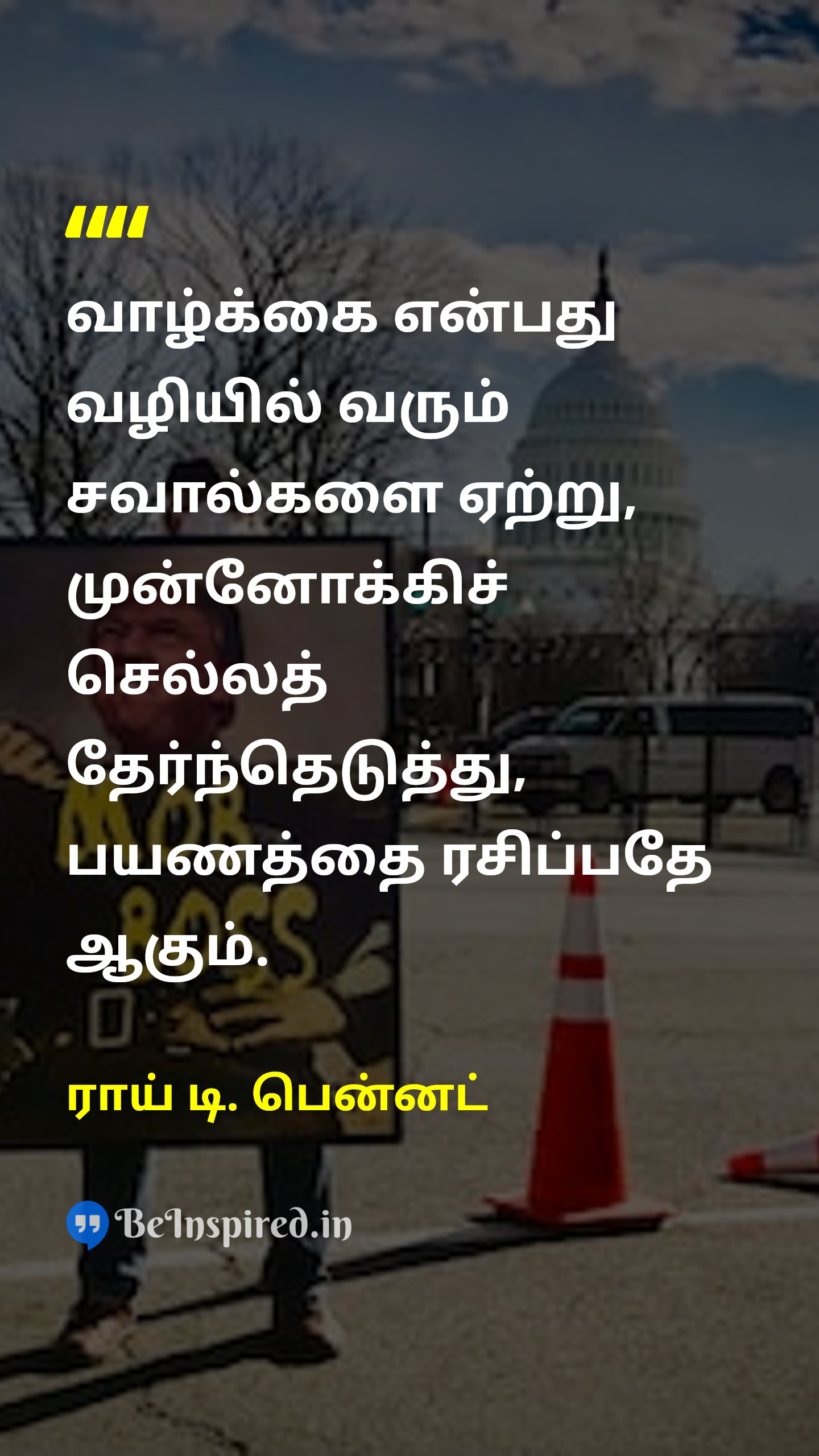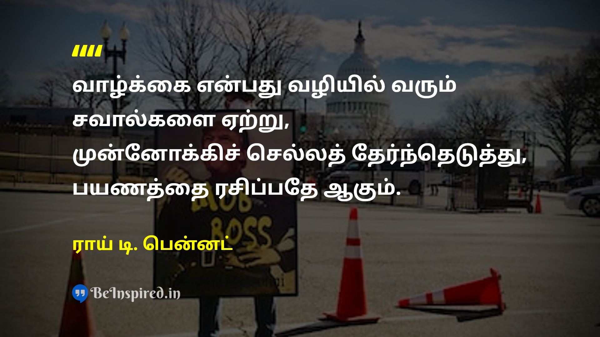 வாழ்க்கை என்பது வழியில் வரும் சவால்களை ஏற்று, முன்னோக்கிச் செல்லத் தேர்ந்தெடுத்து, பயணத்தை ரசிப்பதே ஆகும்.