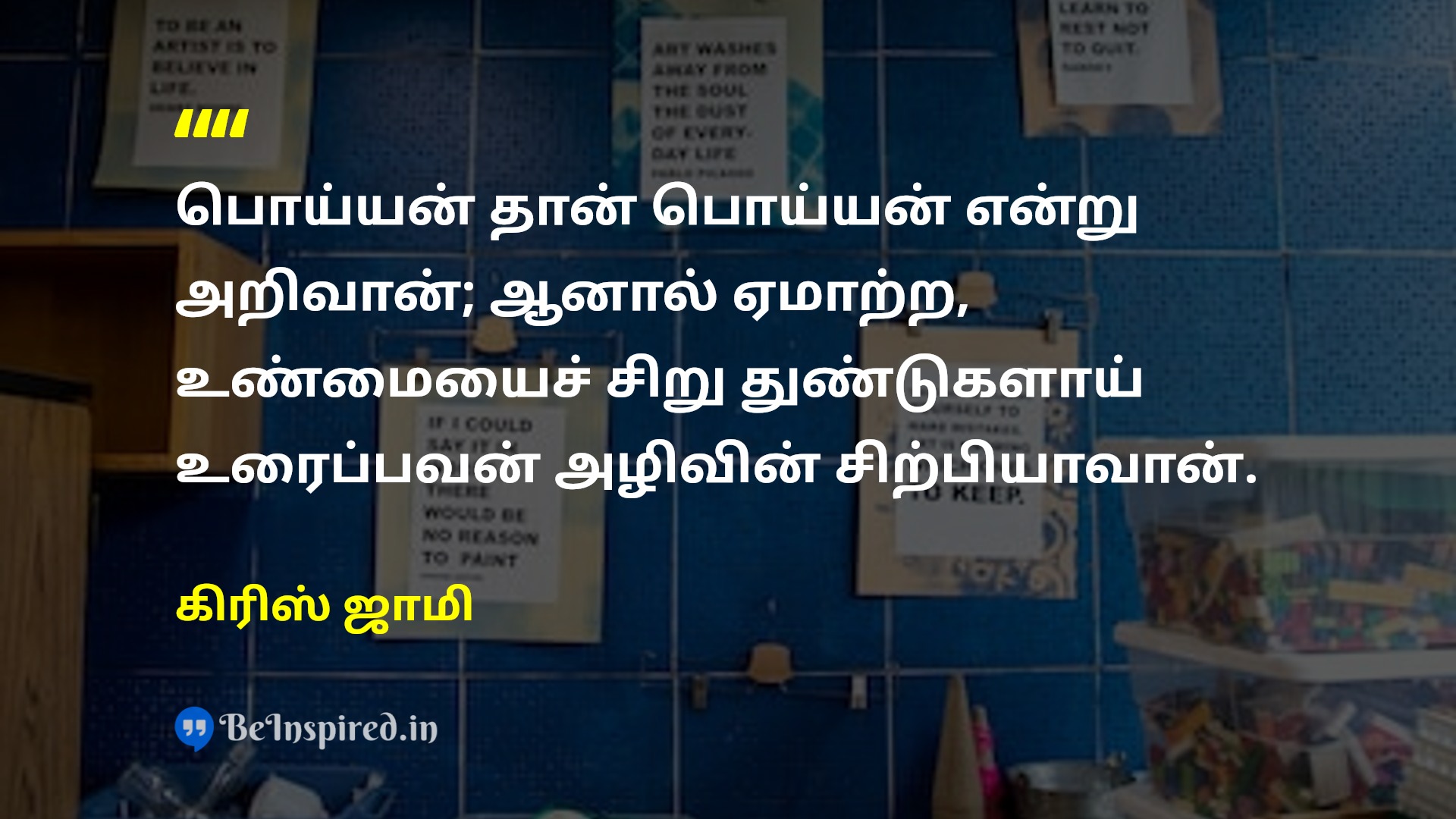 பொய்யன் தான் பொய்யன் என்று அறிவான்; ஆனால் ஏமாற்ற, உண்மையைச் சிறு துண்டுகளாய் உரைப்பவன் அழிவின் சிற்பியாவான்.
