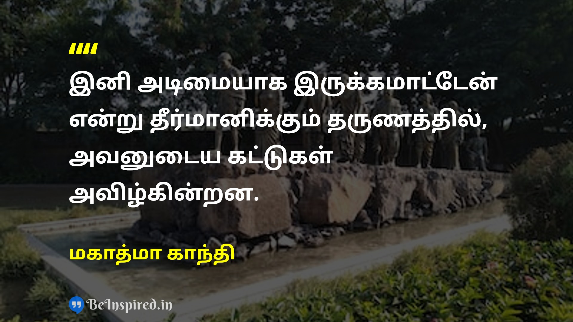 இனி அடிமையாக இருக்கமாட்டேன் என்று தீர்மானிக்கும் தருணத்தில், அவனுடைய கட்டுகள் அவிழ்கின்றன.