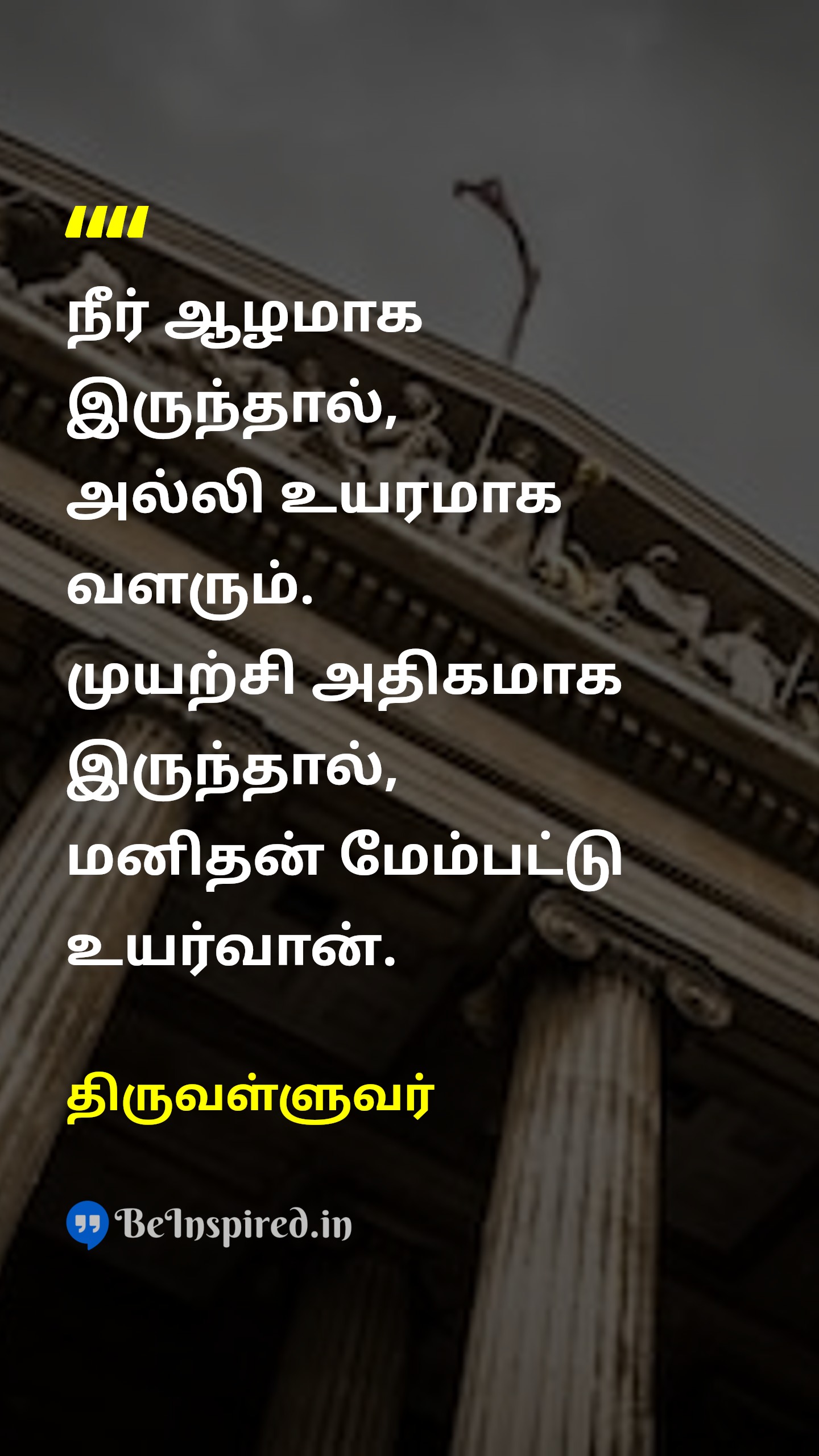 நீர் ஆழமாக இருந்தால், அல்லி உயரமாக வளரும். முயற்சி அதிகமாக இருந்தால், மனிதன் மேம்பட்டு உயர்வான்.