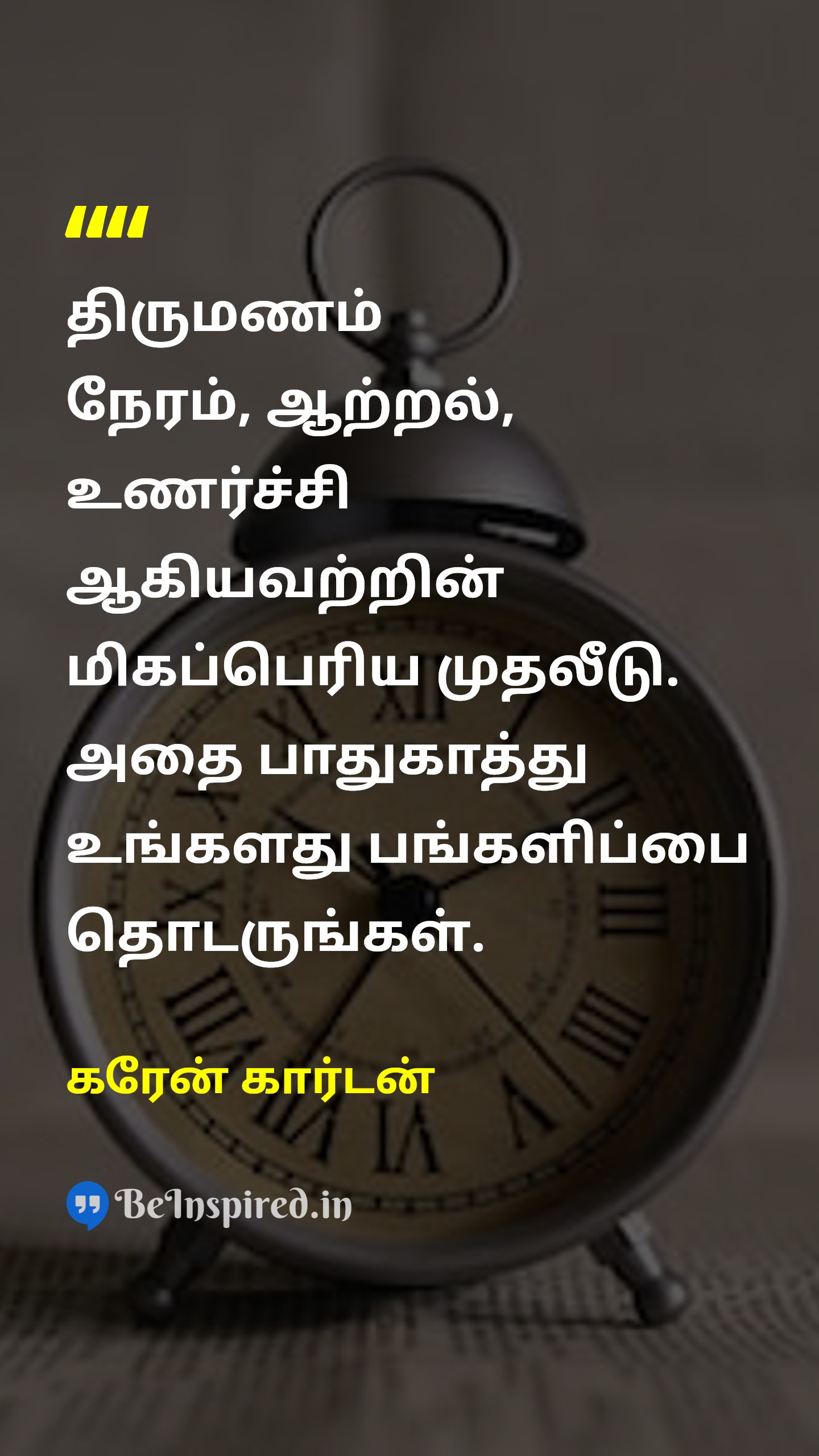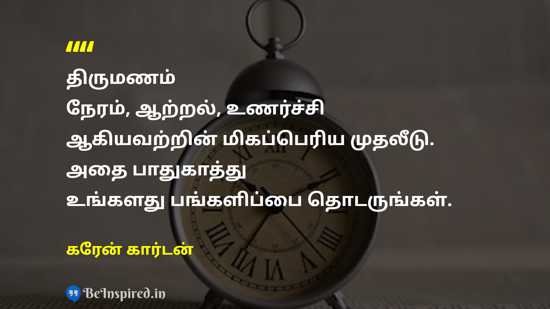 திருமணம் நேரம், ஆற்றல், உணர்ச்சி ஆகியவற்றின் மிகப்பெரிய முதலீடு. அதை பாதுகாத்து உங்களது பங்களிப்பை தொடருங்கள்.