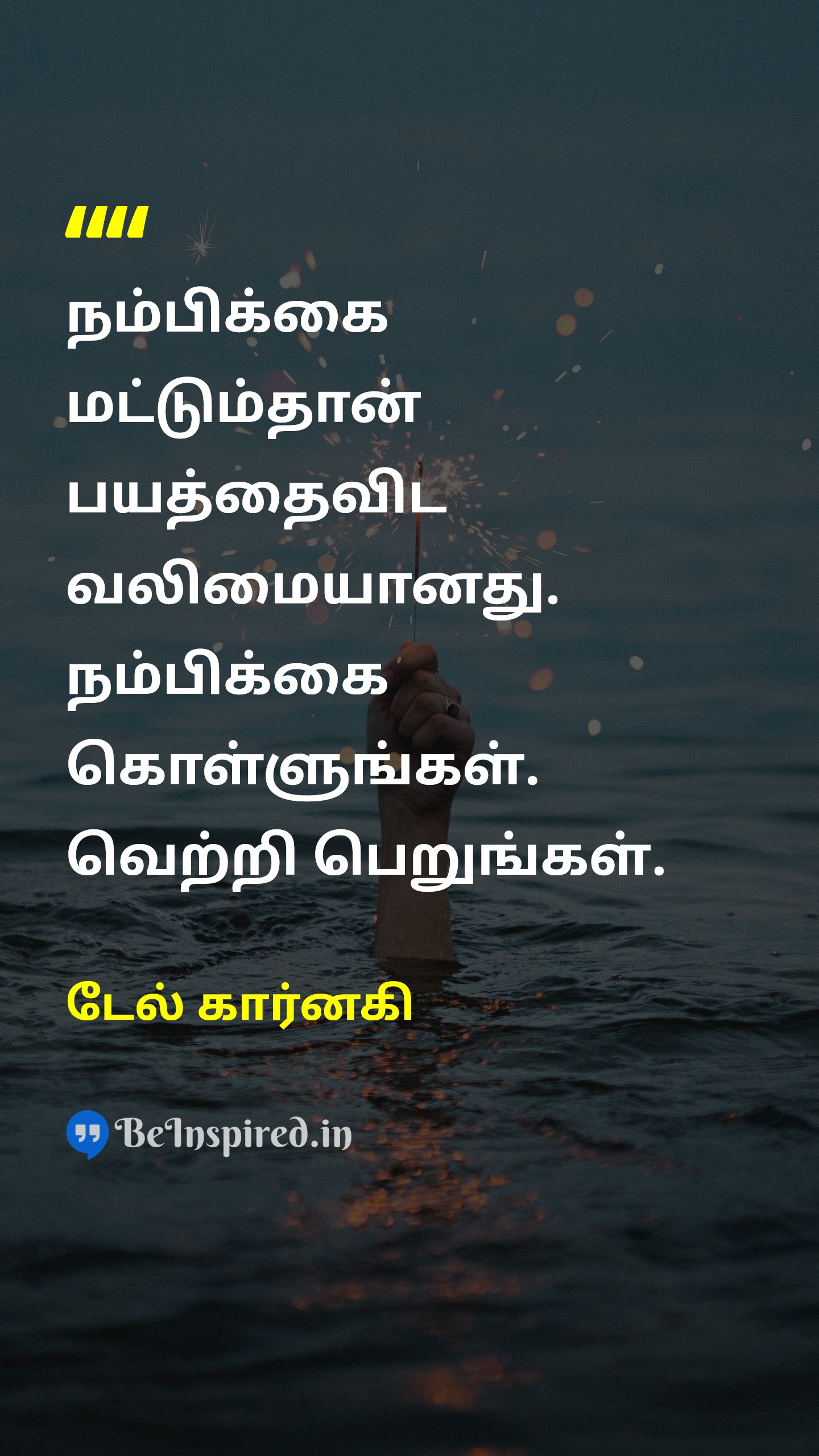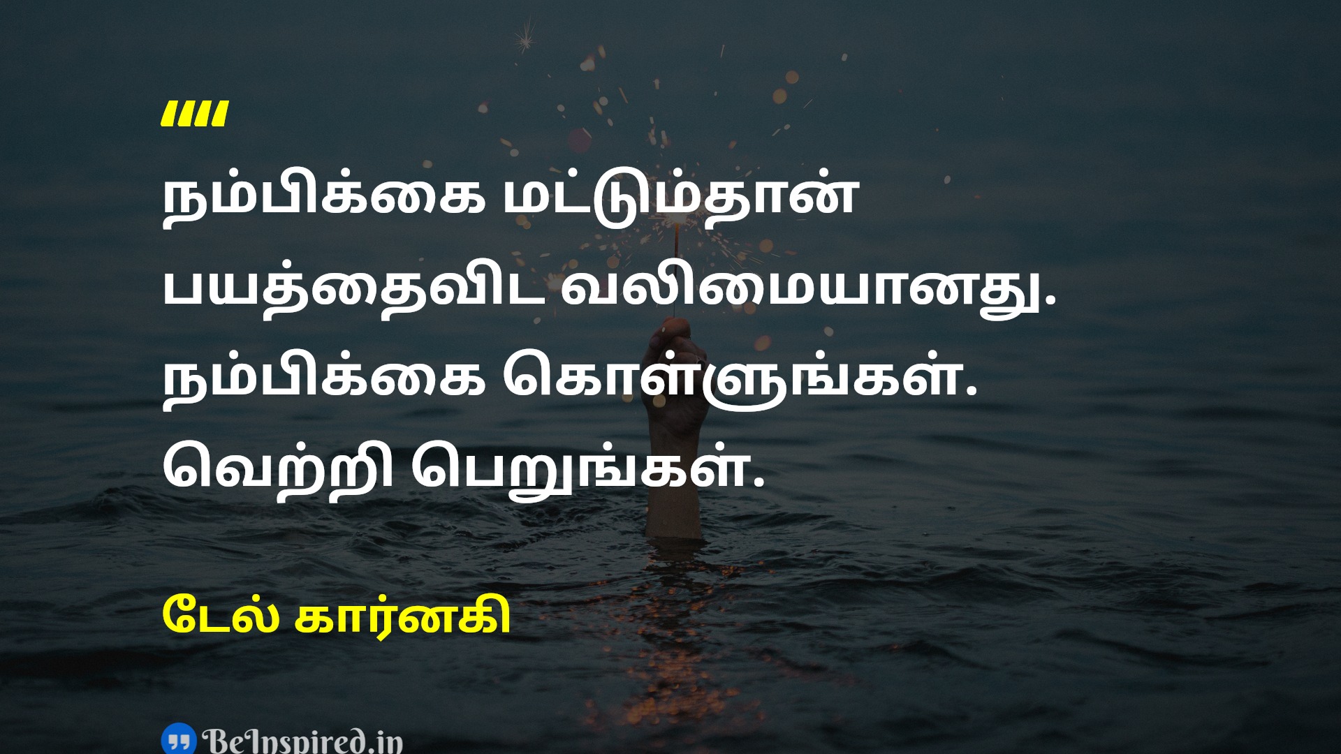 நம்பிக்கை மட்டும்தான் பயத்தைவிட வலிமையானது. நம்பிக்கை கொள்ளுங்கள். வெற்றி பெறுங்கள்.