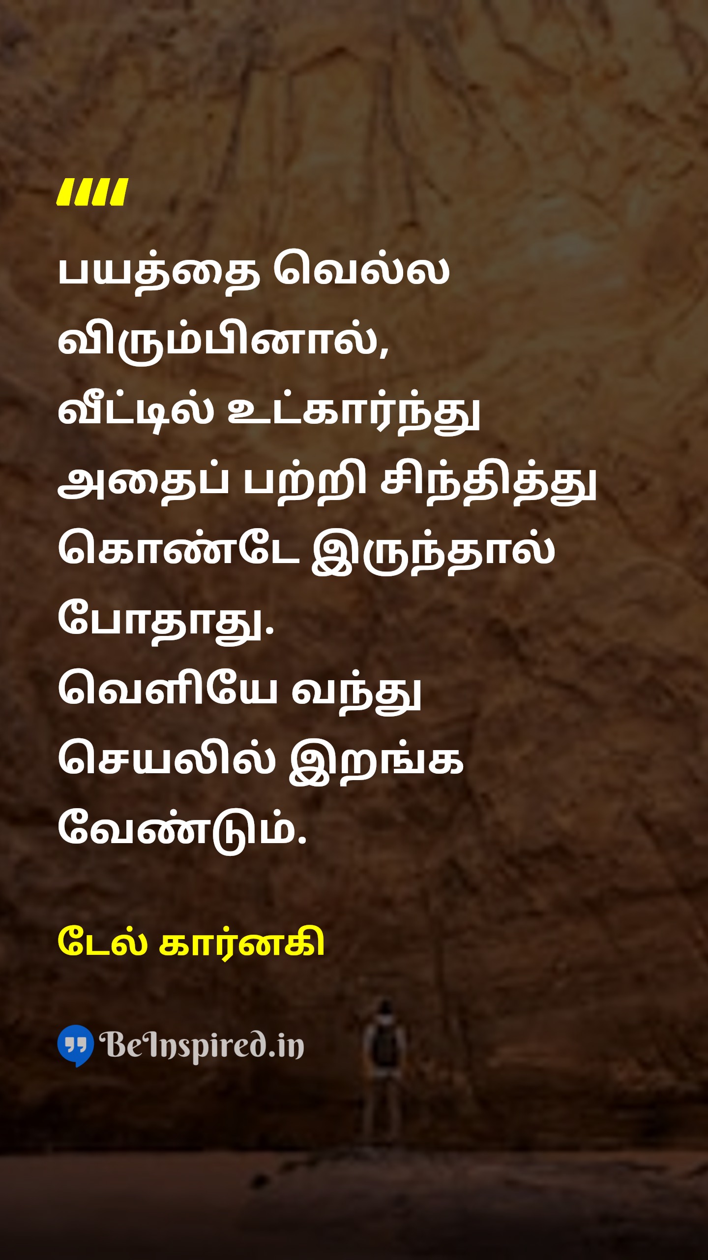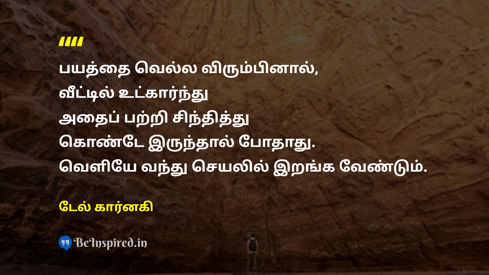 பயத்தை வெல்ல விரும்பினால், வீட்டில் உட்கார்ந்து அதைப் பற்றி சிந்தித்து கொண்டே இருந்தால் போதாது. வெளியே வந்து செயலில் இறங்க வேண்டும்.